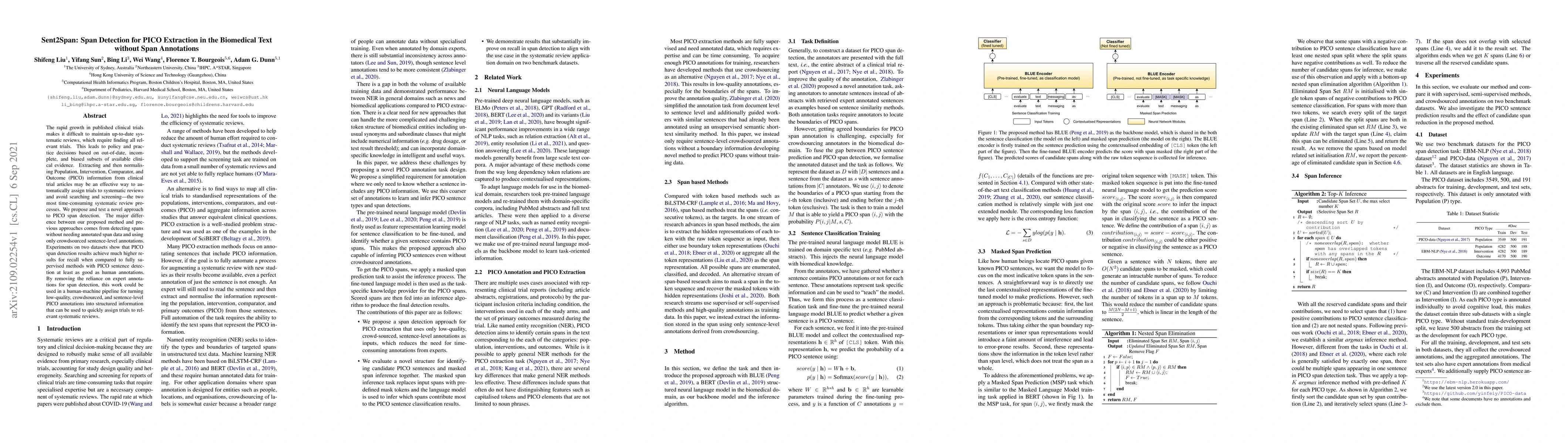 The paper proposes Sent2Span, a novel method for detecting PICO elements in clinical trial articles without requiring annotated span data, using only crowdsourced sentence-level annotations. Experiments demonstrate higher recall and comparable sentence detection accuracy compared to fully supervised methods, suggesting potential for automating systematic review processes.