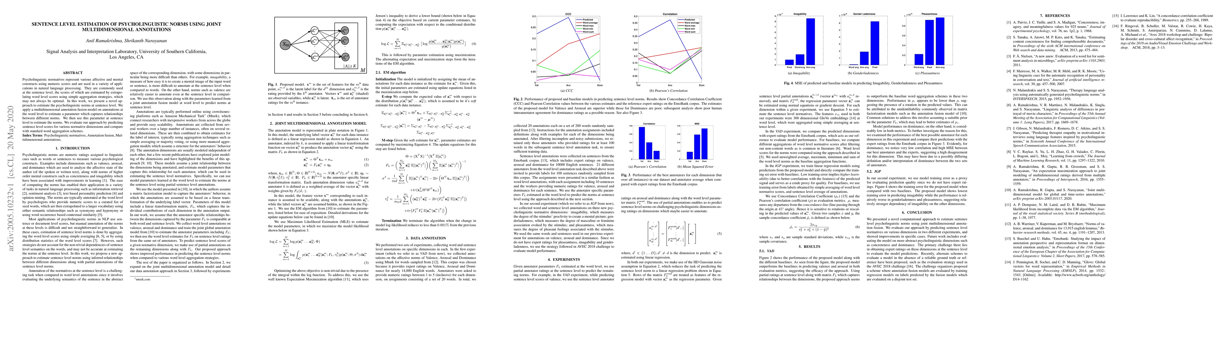 Psycholinguistic normatives represent various affective and mental constructs using numeric scores and are used in a variety of applications in natural language processing. They are commonly used at the sentence level, the scores of which are estimated by extrapolating word level scores using simple aggregation strategies, which may not always be optimal. In this work, we present a novel approach to estimate the psycholinguistic norms at sentence level. We apply a multidimensional annotation fusion model on annotations at the word level to estimate a parameter which captures relationships between different norms. We then use this parameter at sentence level to estimate the norms. We evaluate our approach by predicting sentence level scores for various normative dimensions and compare with standard word aggregation schemes.