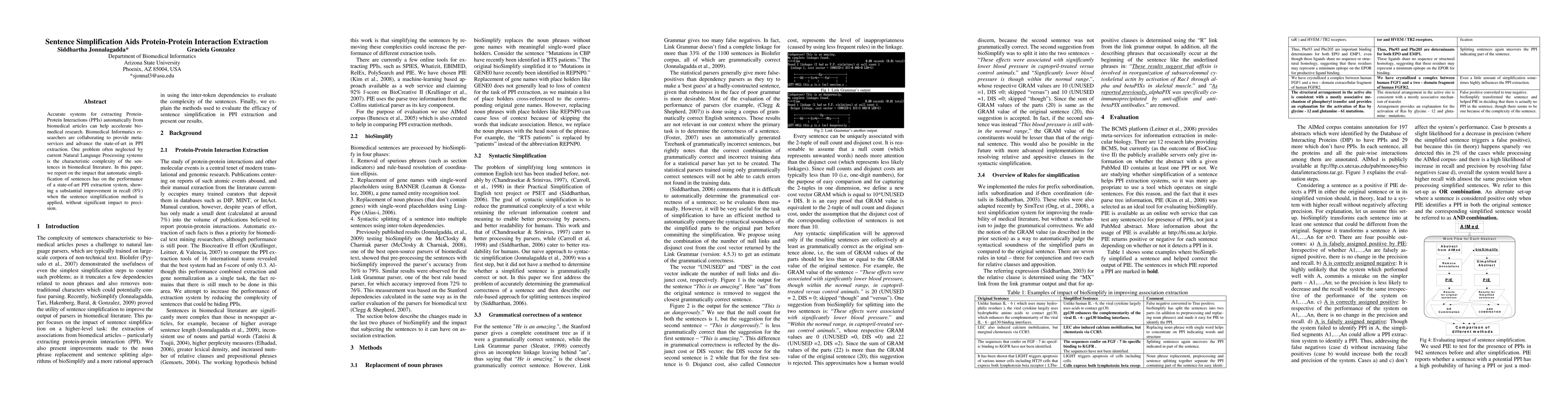 This paper investigates how automatic sentence simplification enhances a state-of-the-art Protein-Protein Interaction extraction system, achieving an 8% improvement in recall while maintaining precision. The study highlights the importance of addressing sentence complexity in biomedical literature for better PPI extraction.