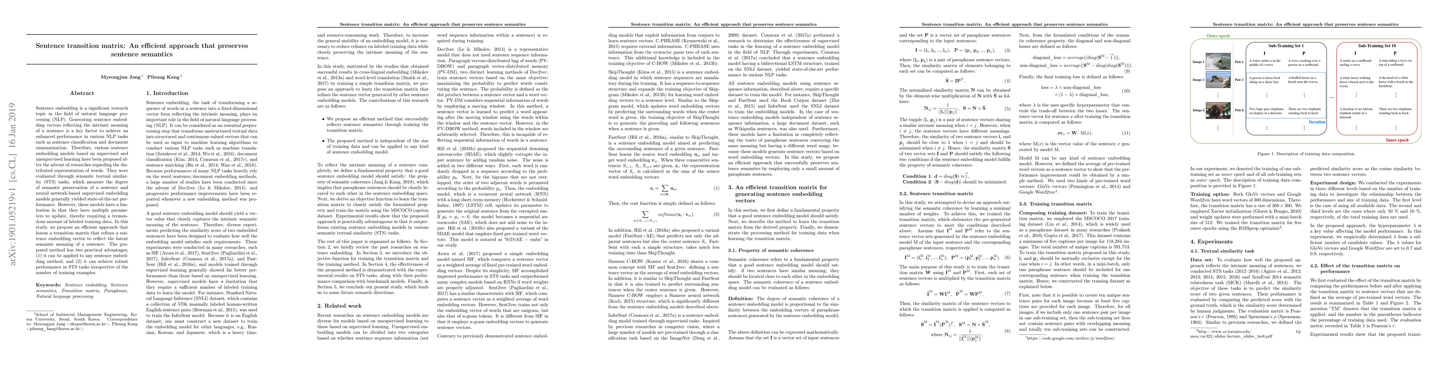 A new method for improving sentence embeddings with a transition matrix preserves semantic meaning while reducing training data requirements.