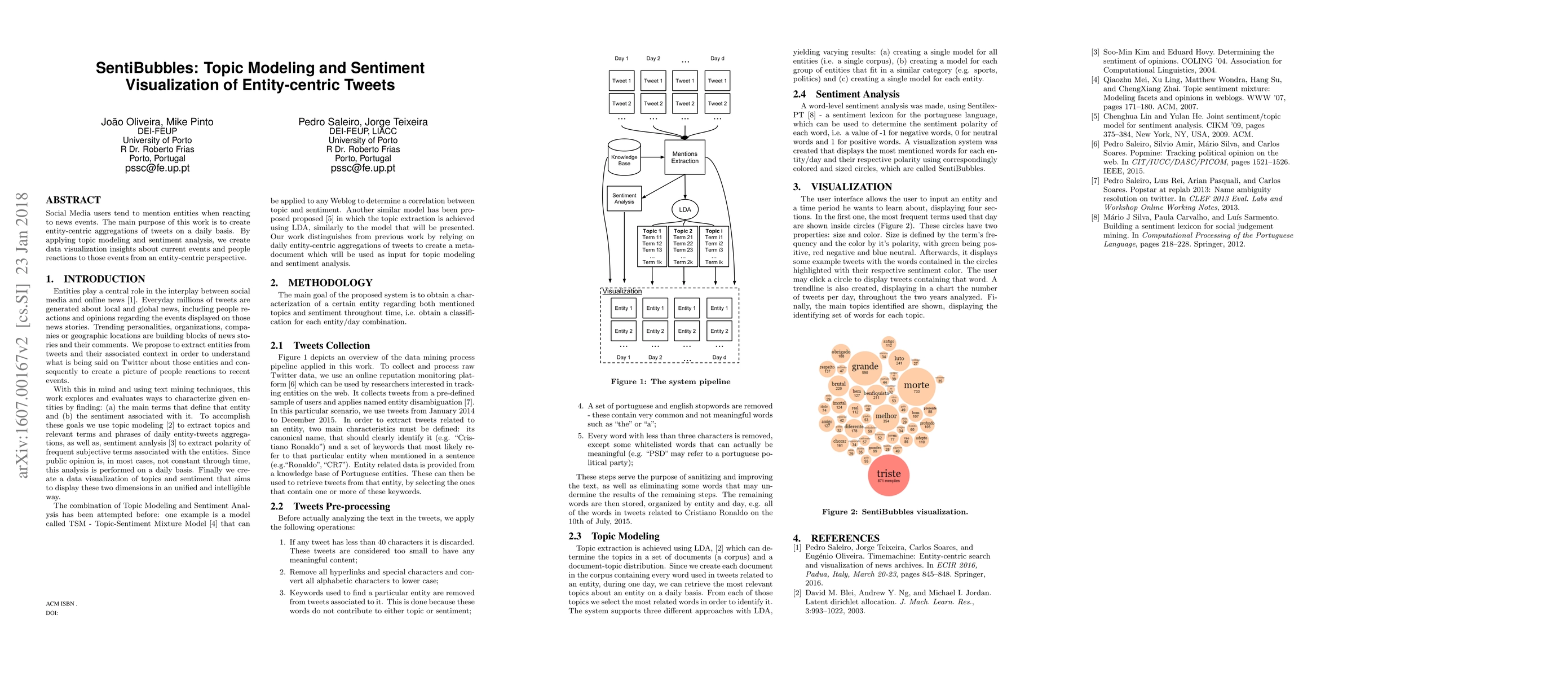Summary: This paper develops SentiBubbles, a method for daily aggregation of entity-centric tweets using topic modeling and sentiment analysis, providing visual insights into public reactions to news events from an entity-focused perspective.