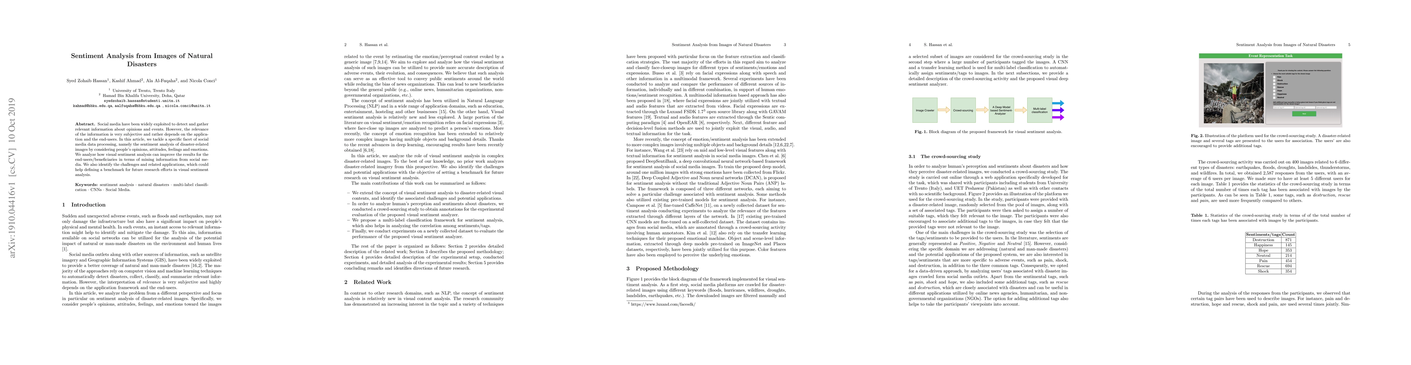 This paper explores sentiment analysis of images related to natural disasters from social media, focusing on how visual sentiment analysis can enhance information mining and improve end-user outcomes. It also discusses challenges and potential applications to establish a benchmark for future research in visual sentiment analysis.