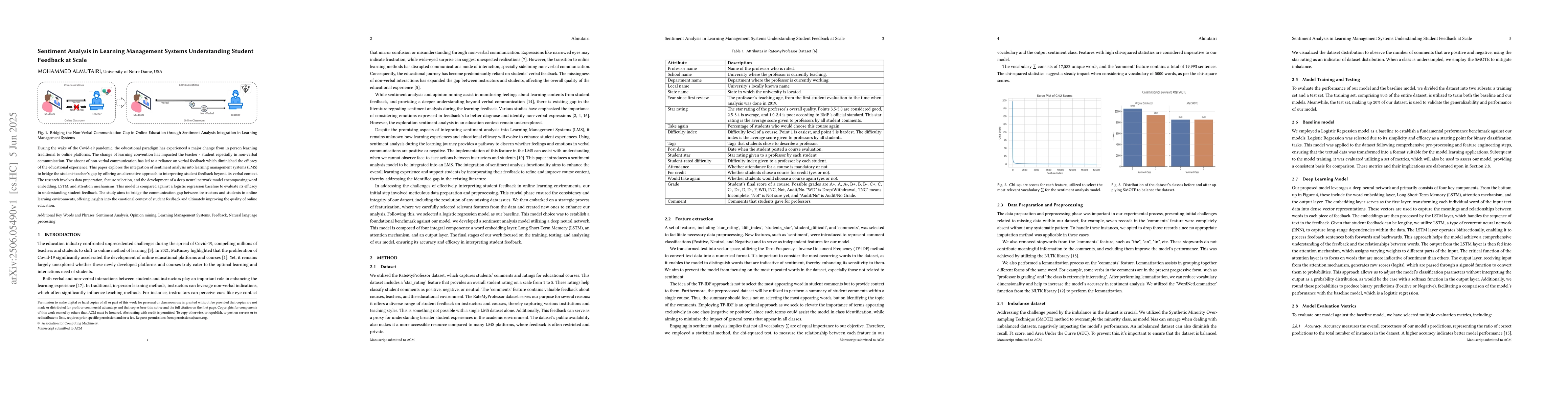 The development and evaluation of a deep neural network model incorporating word embedding, LSTM, and attention mechanisms for sentiment analysis in Learning Management Systems.