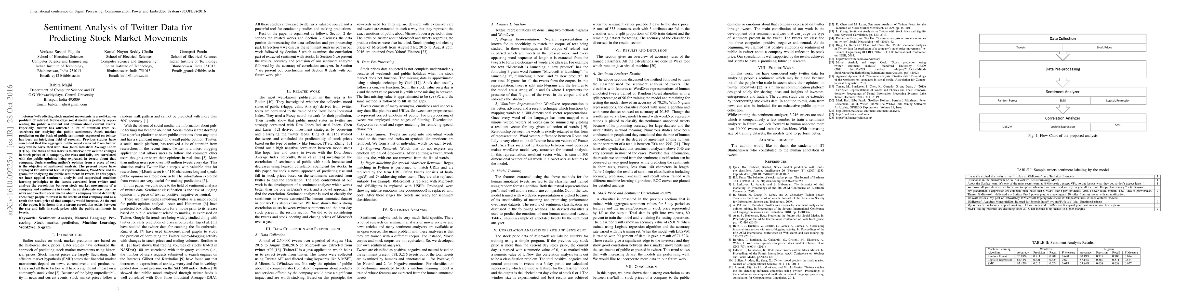 This paper investigates the correlation between public sentiments expressed in Twitter data and stock market movements using sentiment analysis and machine learning. It employs Word2vec and N-gram models to analyze tweets and finds a strong correlation between positive sentiments and stock price increases.