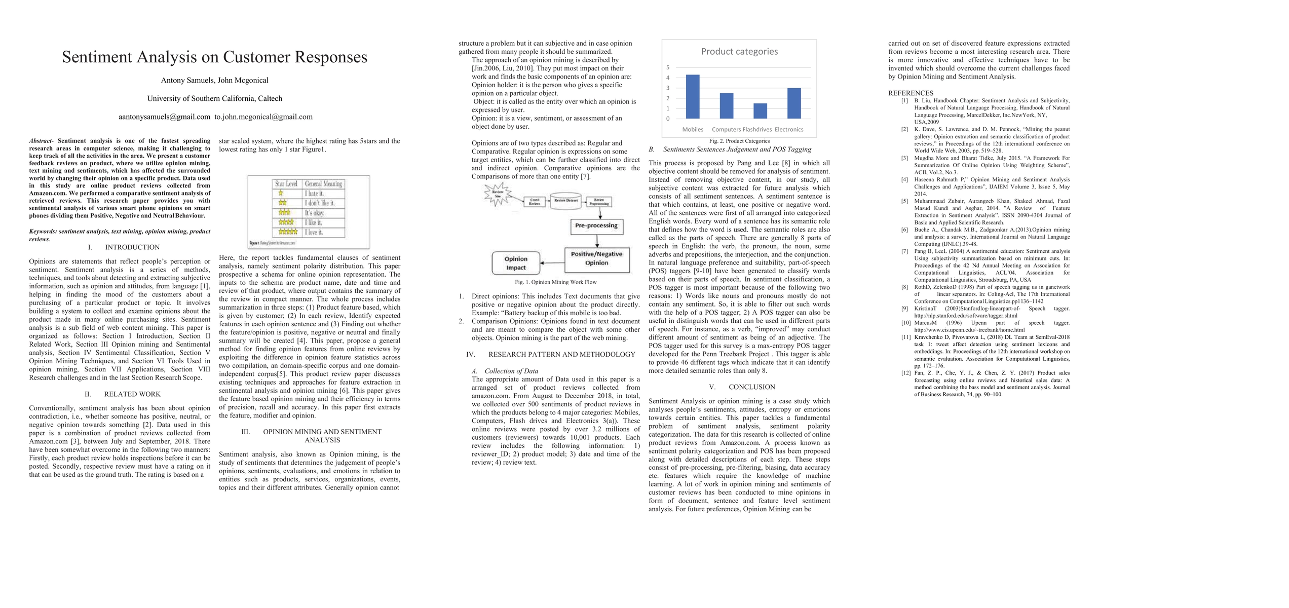 This paper conducts a sentiment analysis of customer reviews on Amazon for smartphones, employing opinion mining and text mining to categorize reviews as Positive, Negative, or Neutral. The study aims to understand how sentiments expressed in these reviews influence public opinion on specific products.