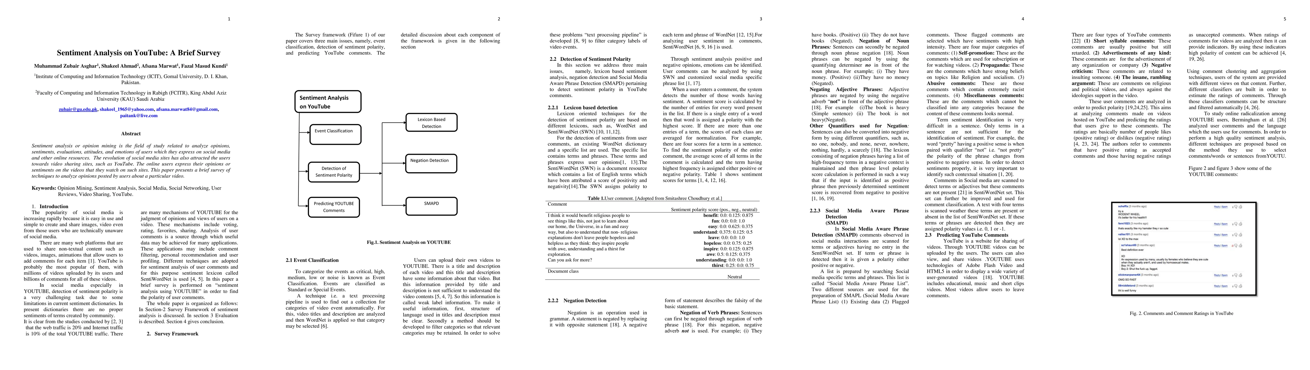 This paper provides a concise survey of sentiment analysis techniques used to evaluate opinions and sentiments expressed by users on YouTube videos. It highlights various methods for mining and analyzing user-generated opinions from video comments.