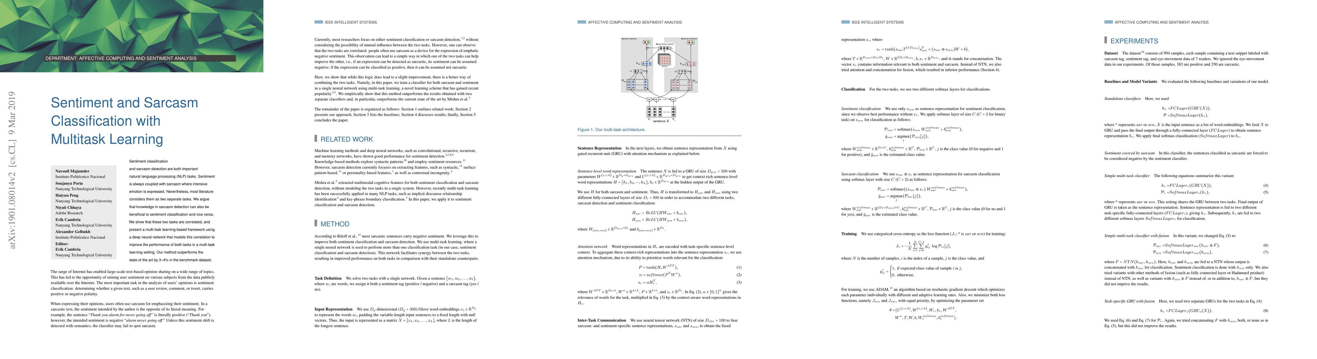 This research proposes a multi-task learning framework leveraging deep neural networks to simultaneously improve sentiment classification and sarcasm detection, demonstrating that these tasks are correlated. The method achieves a 3-4% performance improvement over existing approaches on benchmark datasets.