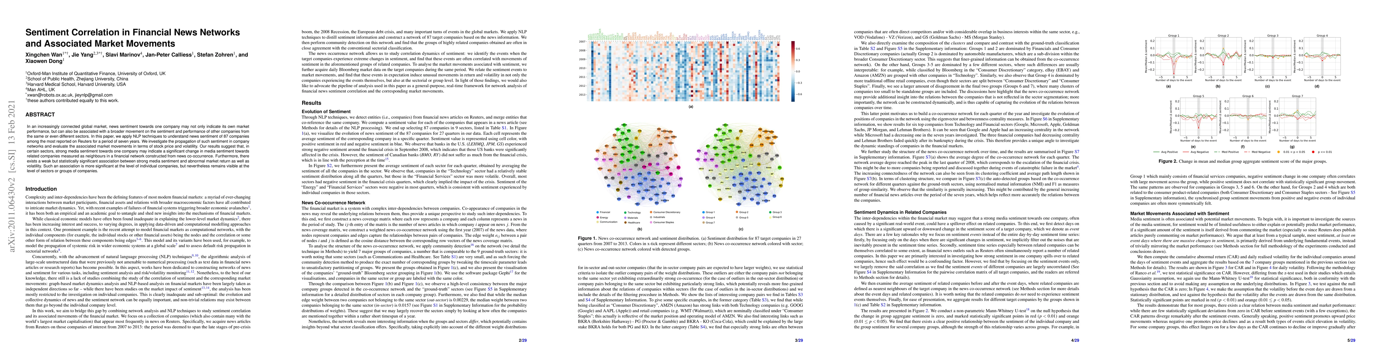 This paper uses NLP techniques to analyze the sentiment in financial news across 87 highly reported companies over seven years, revealing that strong media sentiment can propagate through company networks, influencing both related companies' sentiment and market movements, including stock price and volatility. The study finds a weak but statistically significant link between media sentiment and abnormal market returns and volatility, particularly at the individual company level.