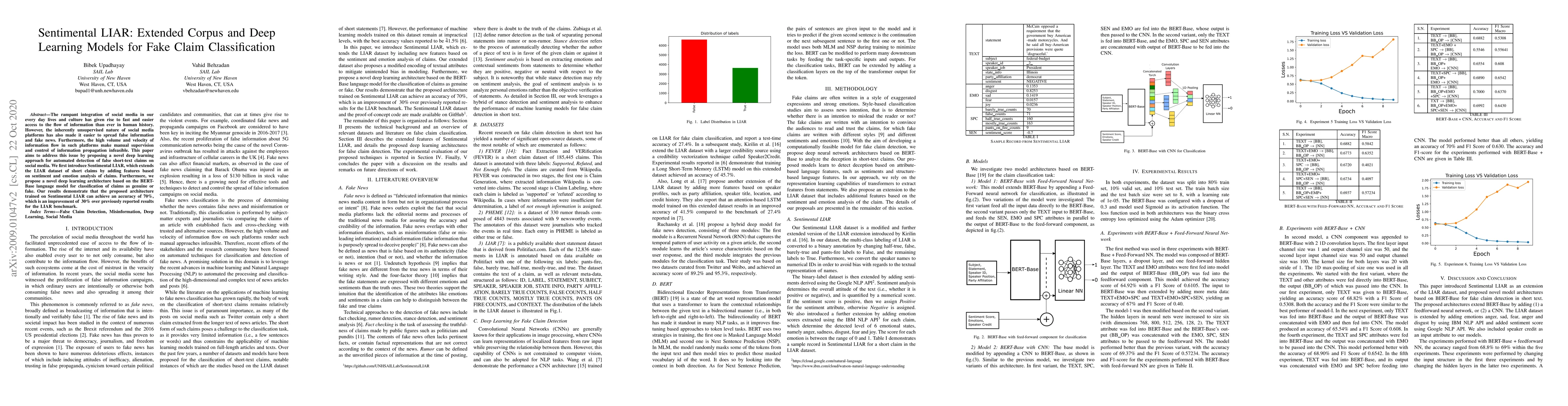 This paper introduces Sentimental LIAR, an extended dataset for fake claim detection, incorporating sentiment and emotion analysis. It proposes a deep learning model based on BERT-Base, achieving a 70% accuracy, significantly outperforming previous methods.