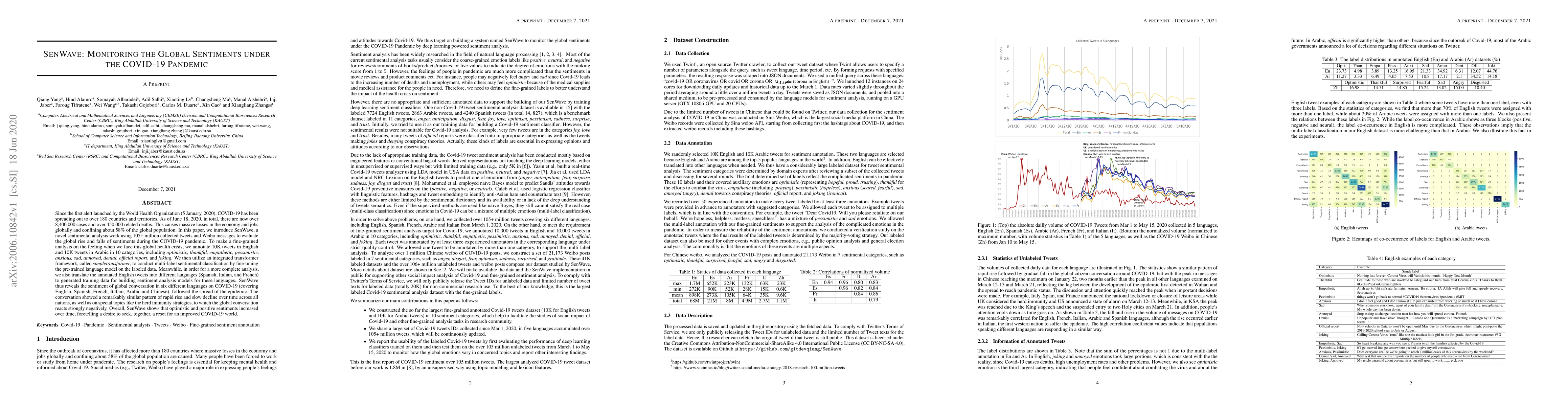 Since the first alert launched by the World Health Organization (5 January, 2020), COVID-19 has been spreading out to over 180 countries and territories. As of June 18, 2020, in total, there are now over 8,400,000 cases and over 450,000 related deaths. This causes massive losses in the economy and jobs globally and confining about 58% of the global population. In this paper, we introduce SenWave, a novel sentimental analysis work using 105+ million collected tweets and Weibo messages to evaluate the global rise and falls of sentiments during the COVID-19 pandemic. To make a fine-grained analysis on the feeling when we face this global health crisis, we annotate 10K tweets in English and 10K tweets in Arabic in 10 categories, including optimistic, thankful, empathetic, pessimistic, anxious, sad, annoyed, denial, official report, and joking. We then utilize an integrated transformer framework, called simpletransformer, to conduct multi-label sentimental classification by fine-tuning the pre-trained language model on the labeled data. Meanwhile, in order for a more complete analysis, we also translate the annotated English tweets into different languages (Spanish, Italian, and French) to generated training data for building sentiment analysis models for these languages. SenWave thus reveals the sentiment of global conversation in six different languages on COVID-19 (covering English, Spanish, French, Italian, Arabic and Chinese), followed the spread of the epidemic. The conversation showed a remarkably similar pattern of rapid rise and slow decline over time across all nations, as well as on special topics like the herd immunity strategies, to which the global conversation reacts strongly negatively. Overall, SenWave shows that optimistic and positive sentiments increased over time, foretelling a desire to seek, together, a reset for an improved COVID-19 world.