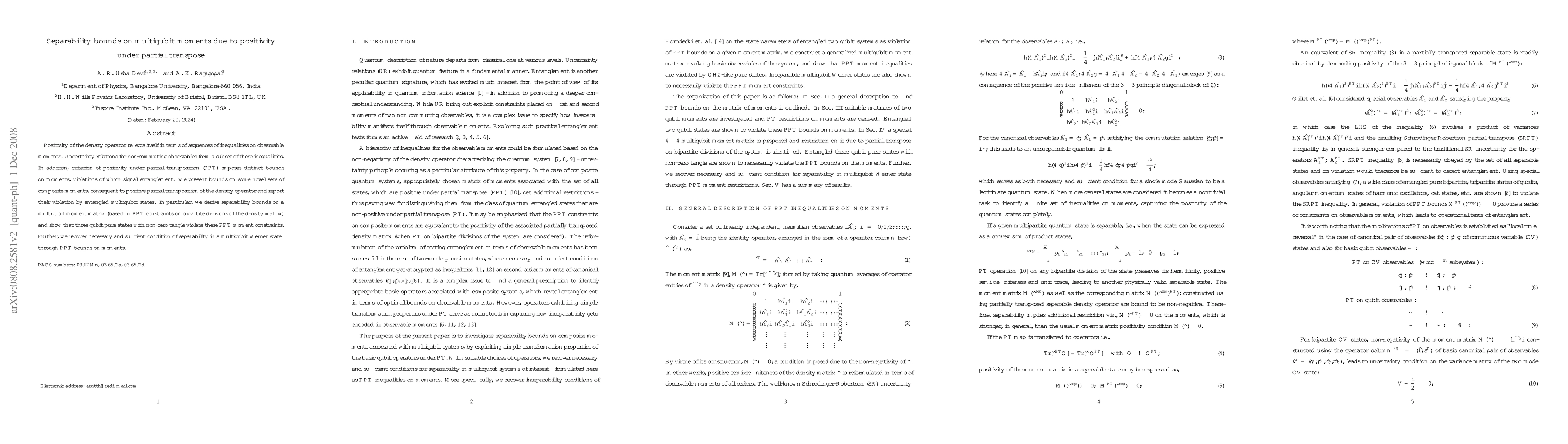 The paper presents novel separability bounds on multiqubit moments derived from positivity under partial transpose, providing a new perspective on entanglement detection in quantum systems.