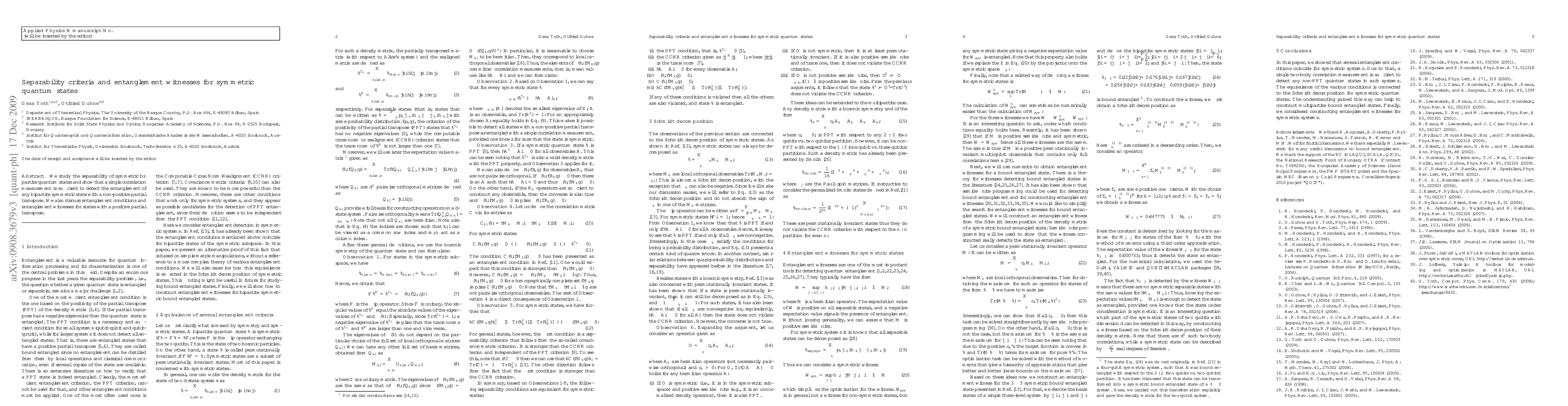 This paper explores the separability criteria for symmetric bipartite quantum states, demonstrating that a single correlation measurement can identify entanglement in states with a non-positive partial transpose. It also examines entanglement conditions and witnesses for states with a positive partial transpose.