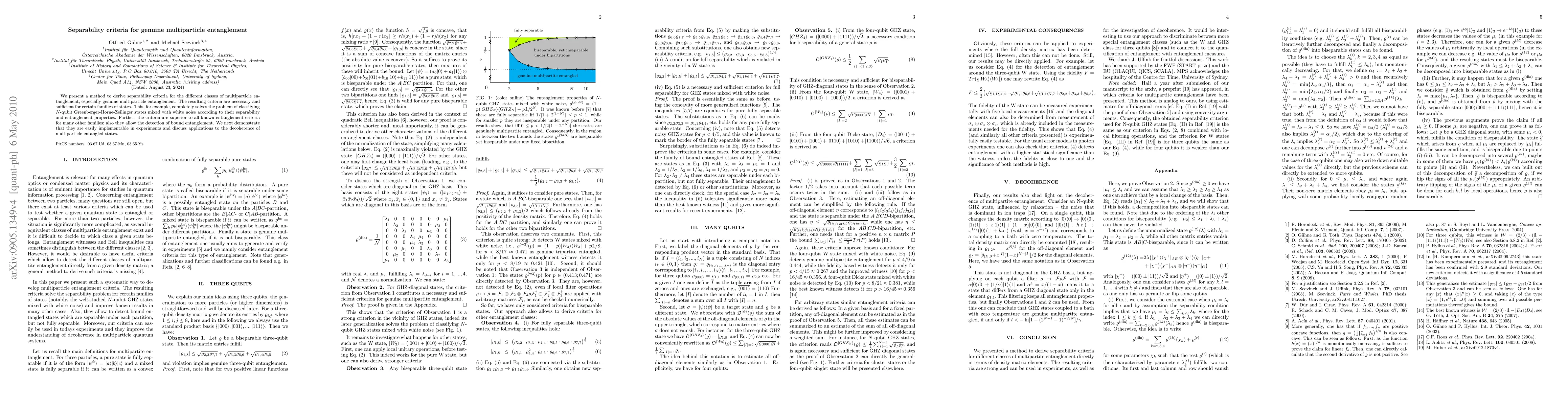 This paper introduces a new method for deriving separability criteria for genuine multiparticle entanglement, which are both necessary and sufficient for certain state families. These criteria outperform existing methods and enable the detection of bound entanglement, offering practical applications for experimental implementation and insights into the decoherence of multiparticle entangled states.