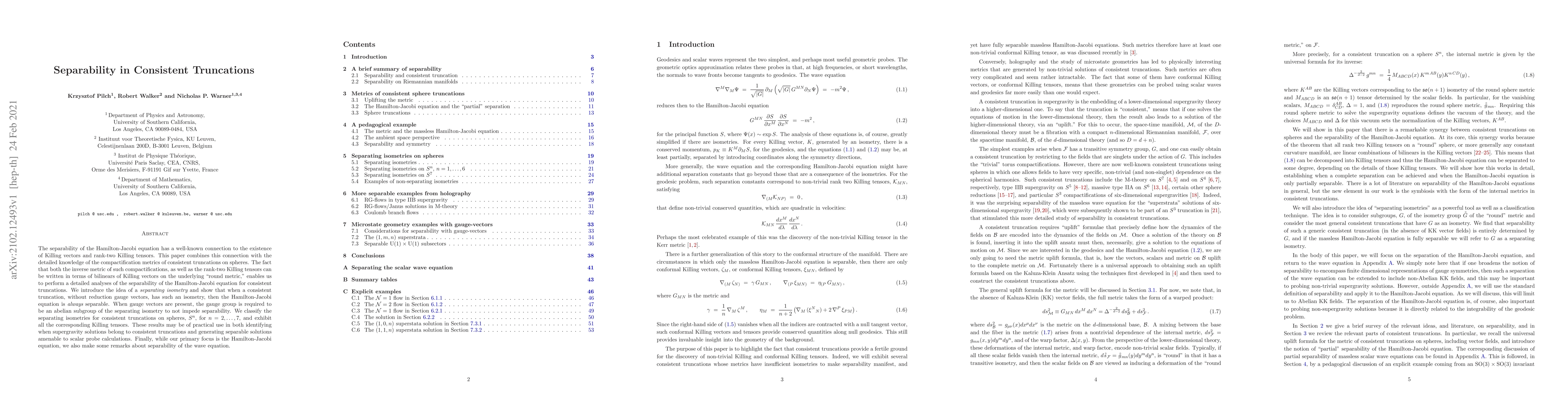 This paper investigates the separability of the Hamilton-Jacobi equation in consistent truncations on spheres by linking it to Killing vectors and rank-two Killing tensors. It introduces the concept of separating isometry and demonstrates that separable solutions are possible when the truncation has a suitable isometry, with additional conditions on the gauge group for gauge vectors.