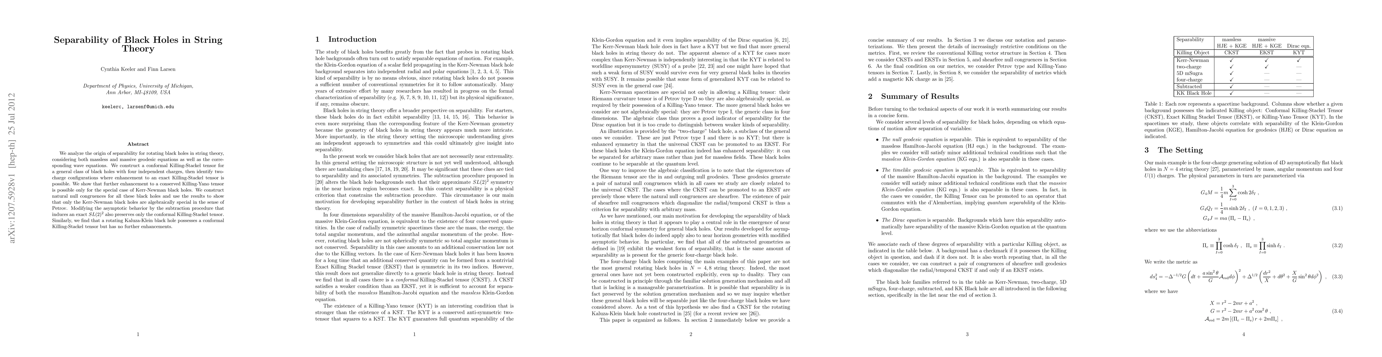 This paper explores the separability properties of rotating black holes in string theory, identifying conditions under which black holes exhibit enhanced symmetries. It finds that only Kerr-Newman black holes possess a conserved Killing-Yano tensor, while others retain only a conformal Killing-Stackel tensor.