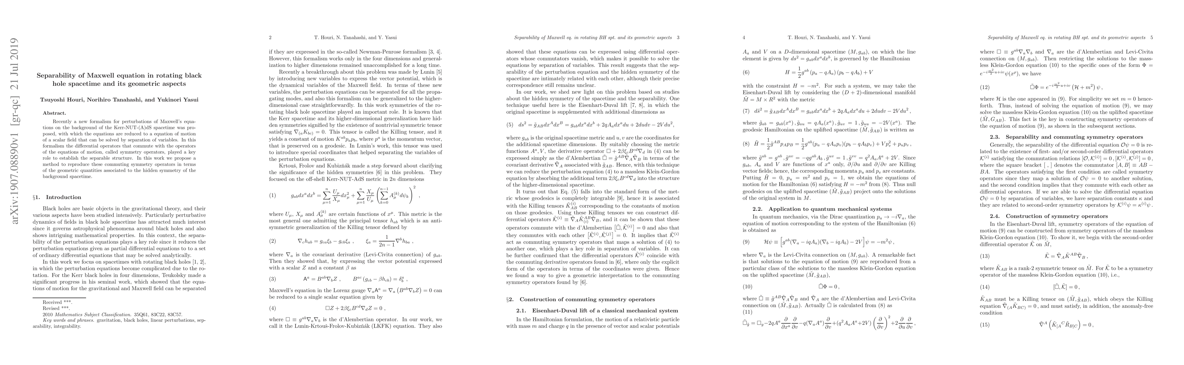 Recently a new formalism for perturbations of Maxwell's equations on the background of the Kerr-NUT-(A)dS spacetime was proposed, with which the equations are reduced to a equation of motion of a scalar field that can be solved by separation of variables. In this formalism the differential operators that commute with the operators of the equations of motion, called symmetry operators, played a key role to establish the separable structure. In this work we propose a method to reproduce these commuting symmetry operators in terms of the geometric quantities associated to the hidden symmetry of the background spacetime.