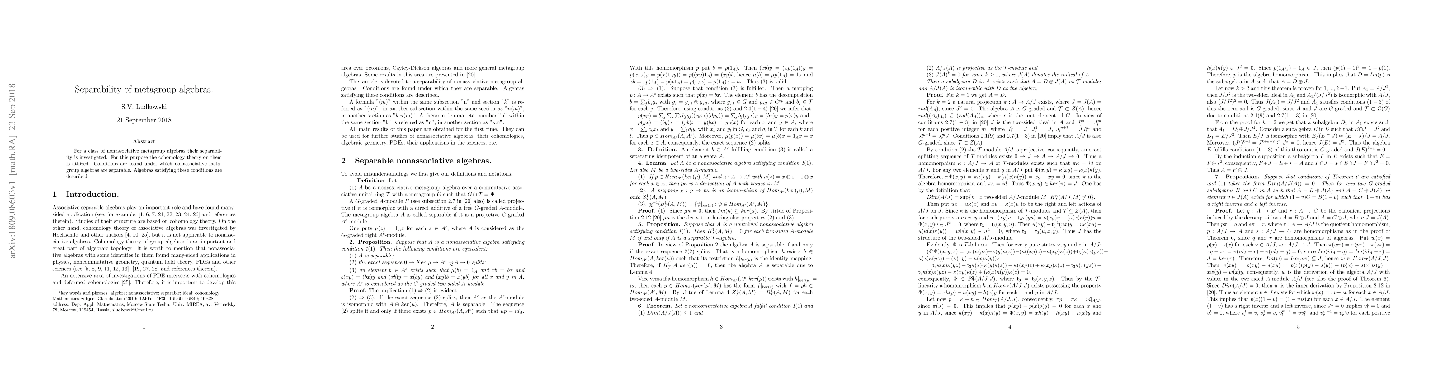 This paper investigates the separability of a class of nonassociative metagroup algebras using cohomology theory. It identifies specific conditions under which these algebras are separable and describes the algebras that meet these criteria.
