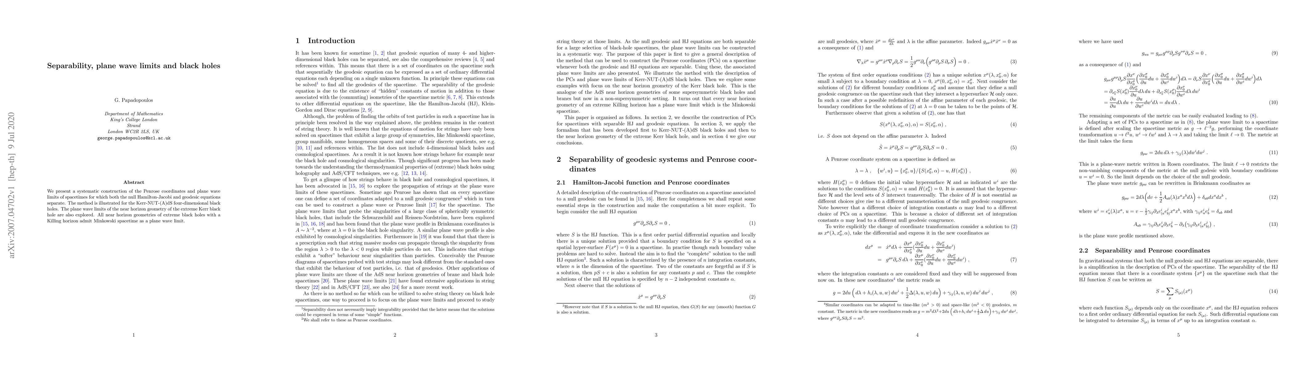 This paper constructs Penrose coordinates and explores plane wave limits for spacetimes where the null Hamilton-Jacobi and geodesic equations separate, focusing on the Kerr-NUT-(A)dS black holes. It also investigates the near horizon geometry of the extreme Kerr black hole, revealing that all such geometries have Minkowski spacetime as a plane wave limit.