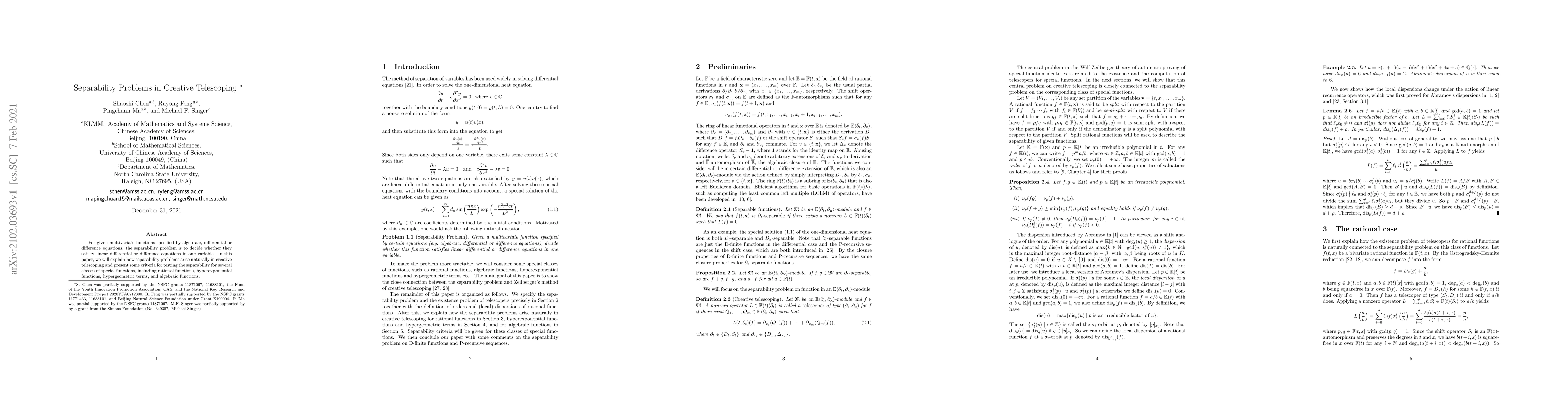 This paper explores the separability problem in creative telescoping, focusing on determining if multivariate functions satisfy linear differential or difference equations in one variable. It presents criteria for testing separability for various special functions like rational, hyperexponential, hypergeometric, and algebraic functions.