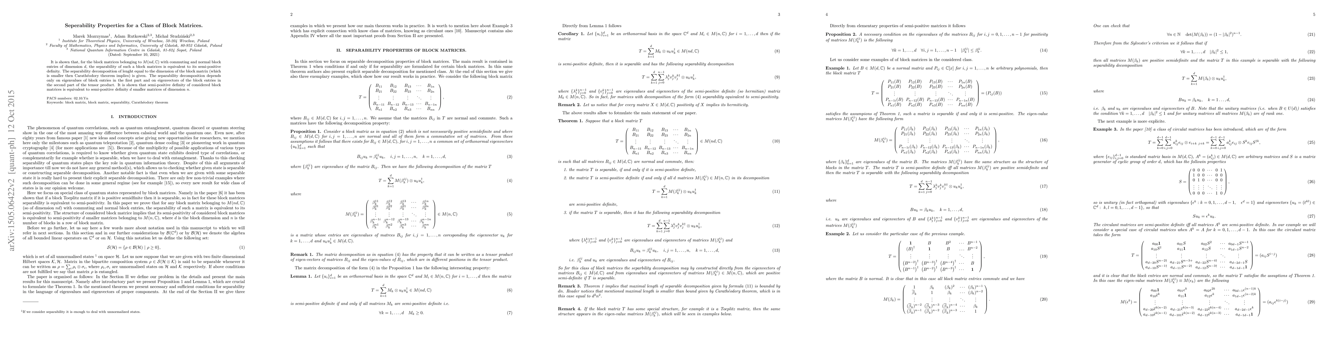 This paper demonstrates that block matrices in $M(nd,\mathbb{C})$ with commuting and normal block entries of dimension $d$ are separable if and only if they are semi-positive definite. The paper provides a separability decomposition that depends on the eigenvalues and eigenvectors of the block entries.
