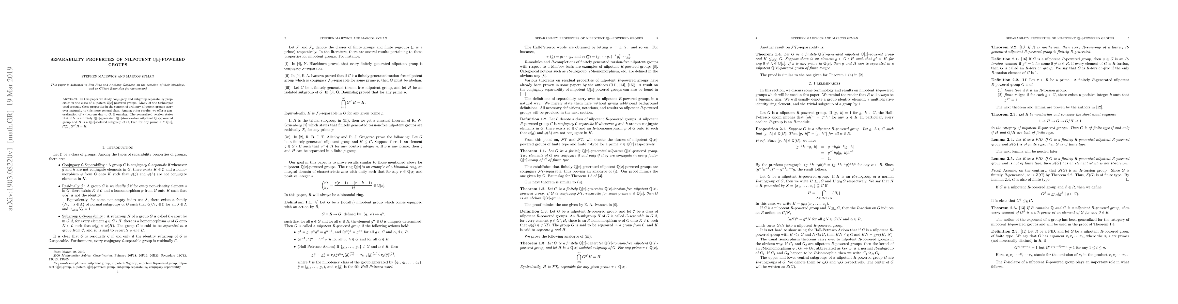 This paper investigates conjugacy and subgroup separability in nilpotent $\mathbb{Q}[x]$-powered groups, extending familiar techniques from ordinary nilpotent groups. It generalizes a theorem by Baumslag, proving that for a finitely $\mathbb{Q}[x]$-generated, $\mathbb{Q}[x]$-torsion-free nilpotent $\mathbb{Q}[x]$-powered group $G$ and a $\mathbb{Q}[x]$-isolated subgroup $H$ of $G$, $\bigcap_{i = 1}^{\infty} G^{{\pi}^{i}}H = H$ for any prime $\pi \in \mathbb{Q}[x]$.