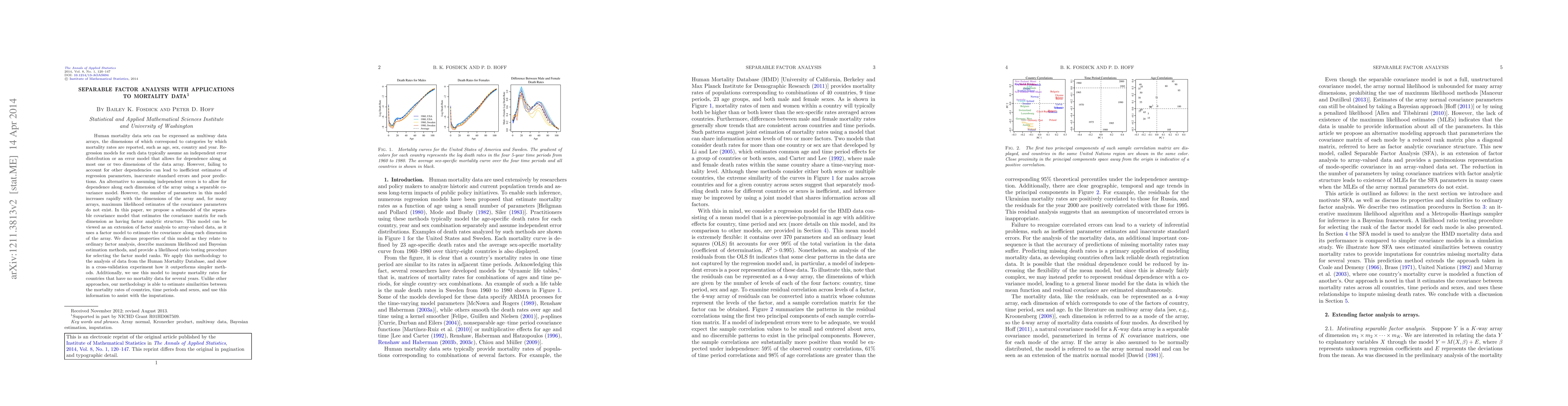 This paper proposes a separable factor analysis model to account for dependencies in multiway mortality data arrays, addressing the limitations of traditional regression models. The method estimates the covariance matrix using factor analytic structure, enabling better predictions and imputations, as demonstrated through an application to the Human Mortality Database.