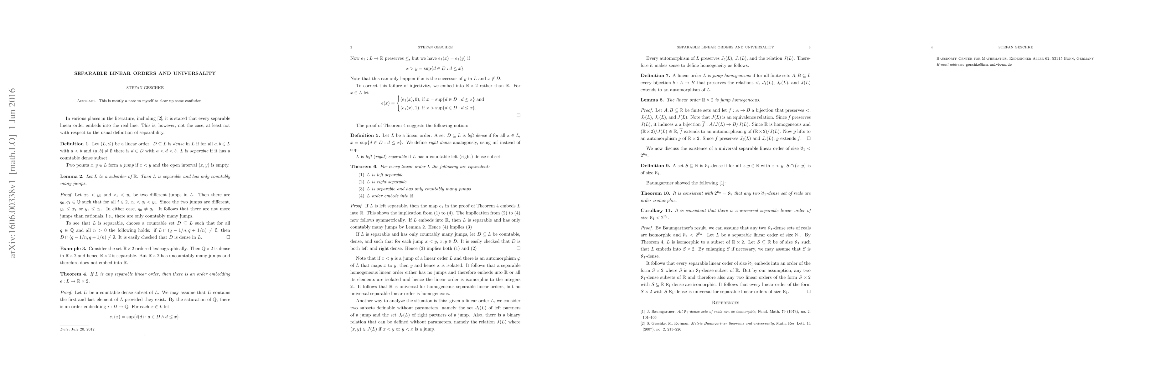 In various places in the literature it is stated that every separable linear order embeds into the real line. This is, however, not the case, at least not with respect to the usual definition of separability. We correct this misconception.