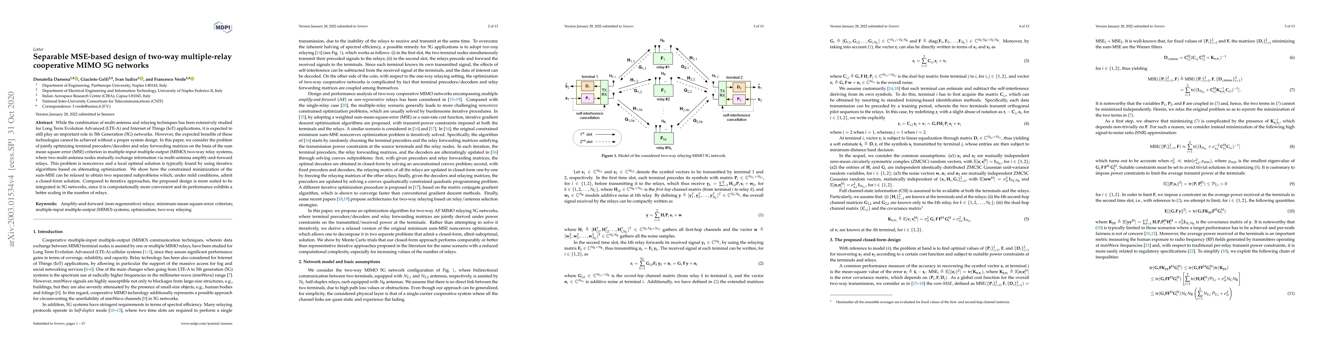 While the combination of multi-antenna and relaying techniques has been extensively studied for Long Term Evolution Advanced (LTE-A) and Internet of Things (IoT) applications, it is expected to still play an important role in 5th Generation (5G) networks. However, the expected benefits of these technologies cannot be achieved without a proper system design. In this paper, we consider the problem of jointly optimizing terminal precoders/decoders and relay forwarding matrices on the basis of the sum mean square error (MSE) criterion in multiple-input multiple-output (MIMO) two-way relay systems, where two multi-antenna nodes mutually exchange information via multi-antenna amplify-and-forward relays. This problem is nonconvex and a local optimal solution is typically found by using iterative algorithms based on alternating optimization. We show how the constrained minimization of the sum-MSE can be relaxed to obtain two separated subproblems which, under mild conditions, admit a closed-form solution. Compared to iterative approaches, the proposed design is more suited to be integrated in 5G networks, since it is computationally more convenient and its performance exhibits a better scaling in the number of relays.