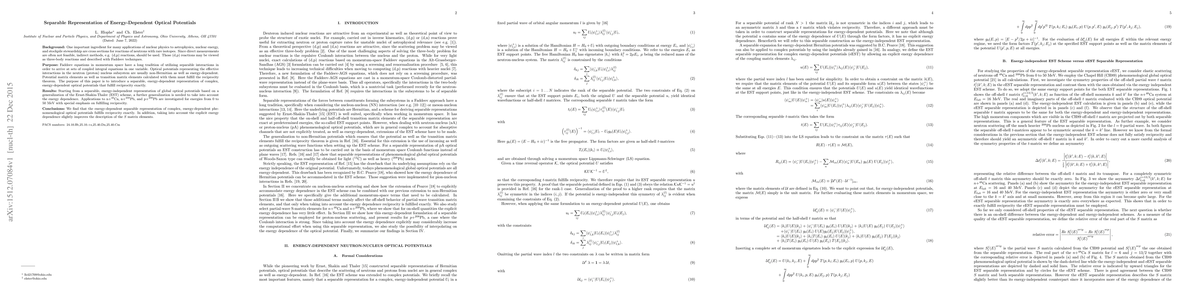 The paper presents a generalized Ernst-Shakin-Thaler (eEST) separable scheme for energy-dependent optical potentials, ensuring exact reciprocity and improving the description of S matrix elements.