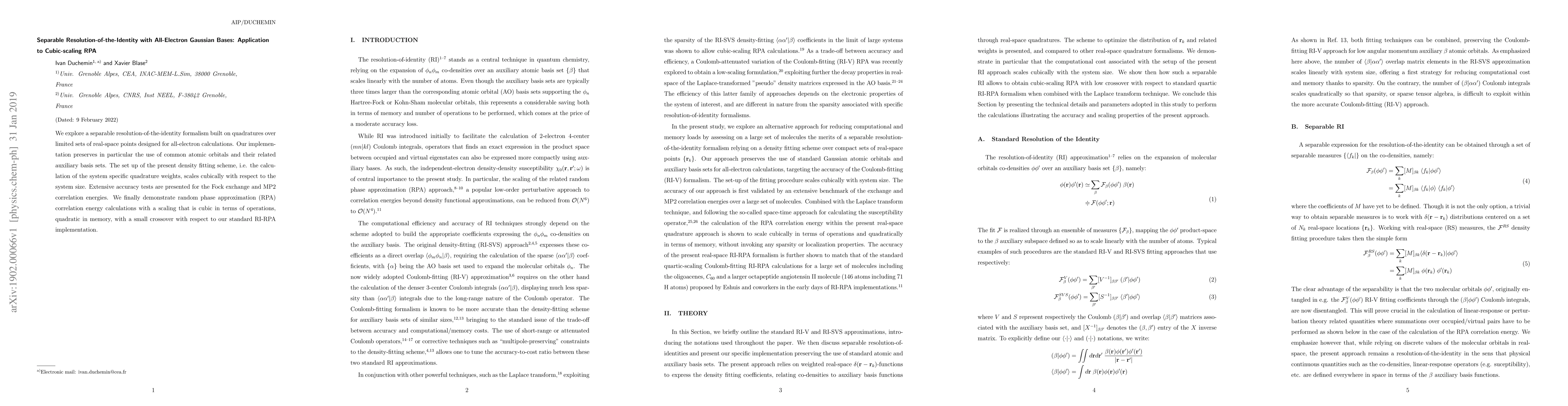 This paper introduces a separable resolution-of-the-identity method for all-electron Gaussian bases, enabling cubic-scaling Random Phase Approximation (RPA) calculations. The method scales cubically in operations and quadratically in memory, while maintaining the use of common atomic orbitals and auxiliary basis sets.