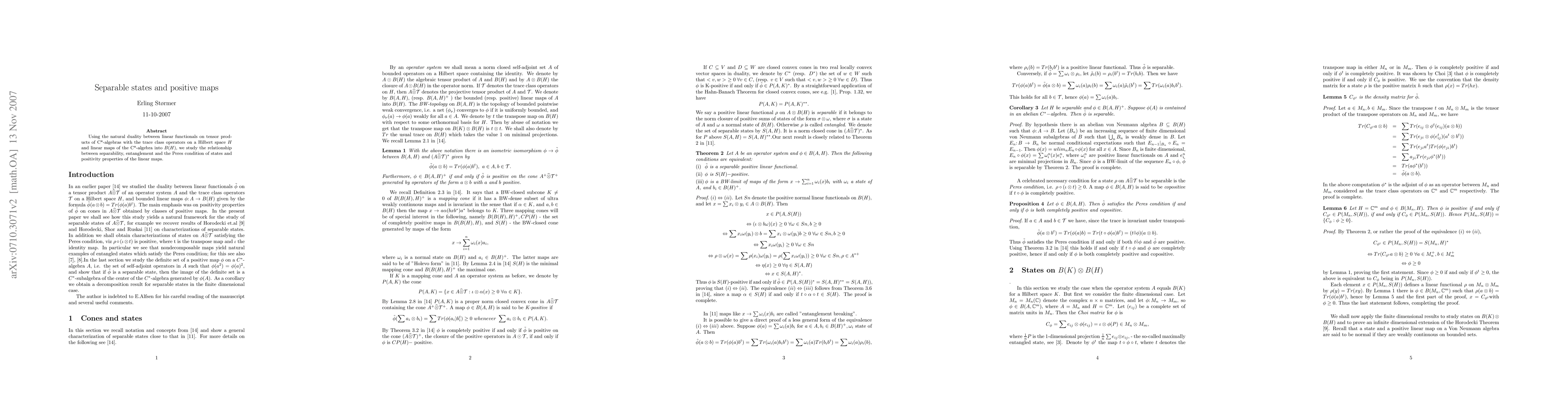 This research explores the connection between separable quantum states, entanglement, and positivity of linear maps using a duality between linear functionals and operators on Hilbert spaces, shedding light on the Peres condition and implications for quantum information theory.