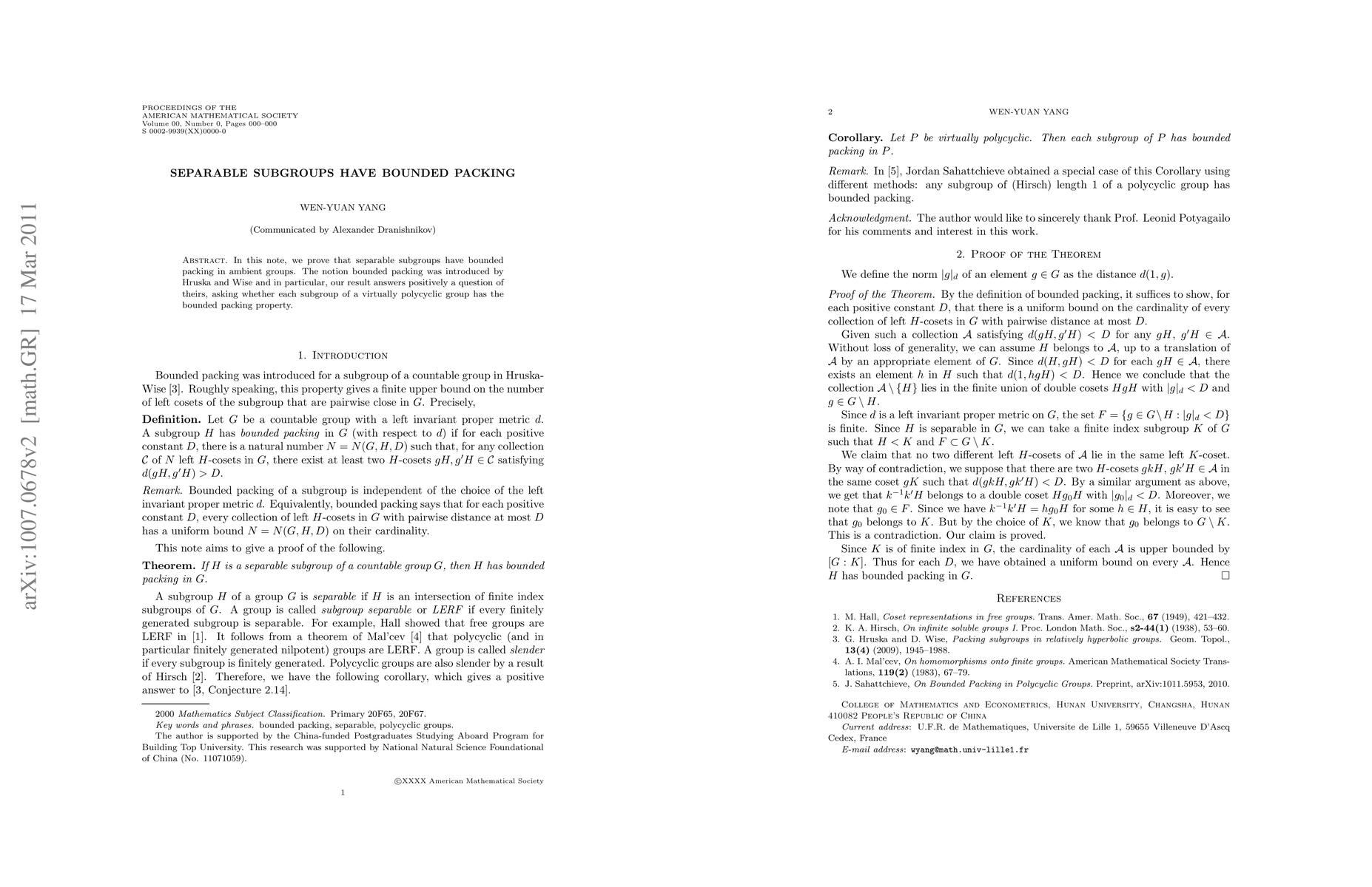 Separable subgroups in groups have a bounded packing property, answering positively a question of Hruska and Wise regarding virtually polycyclic groups. This result has implications for the study of group actions and their properties.