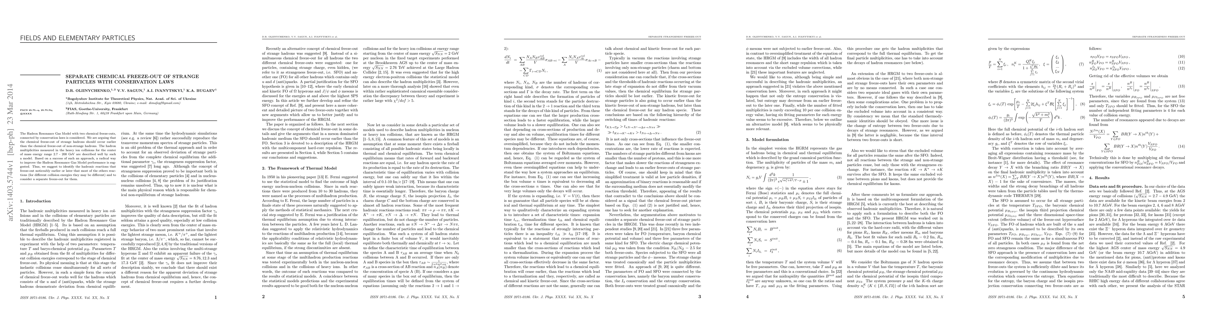 The Hadron Resonance Gas Model with two chemical freeze-outs, connected by conservation laws is considered. We are arguing that the chemical freeze-out of strange hadrons should occur earlier than the chemical freeze-out of non-strange hadrons. The hadron multiplicities measured in the heavy ion collisions for the center of mass energy range 2.7 - 200 GeV are described well by such a model. Based on a success of such an approach, a radical way to improve the Hadron Resonance Gas Model performance is suggested. Thus, we suggest to identify the hadronic reactions that freeze-out noticeably earlier or later that most of the others reactions (for different collision energies they may be different) and to consider a separate freeze-out for them.
