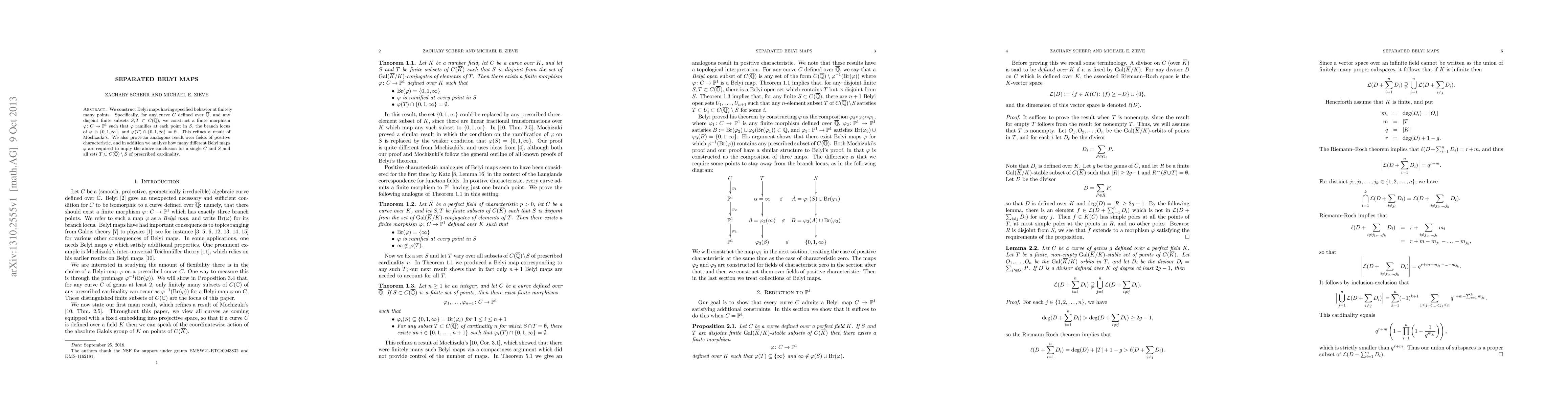 The paper constructs Belyi maps that ramify at specified points on a curve over Q-bar while ensuring the branch locus is {0,1,∞}, and generalizes this to positive characteristic fields. It also investigates the number of such maps needed for different cardinalities of disjoint point sets.