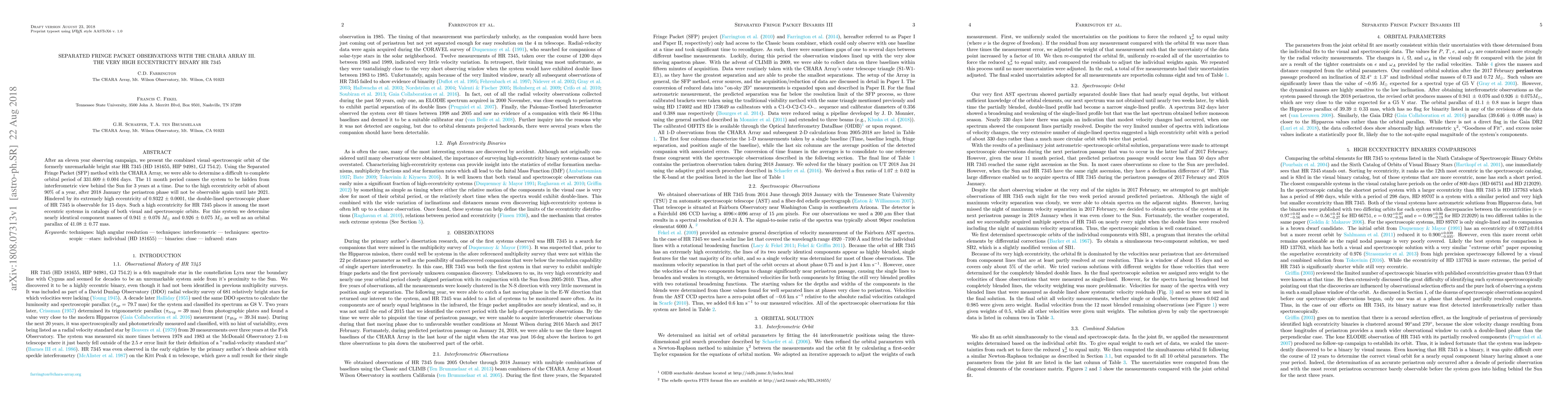 After an eleven year observing campaign, we present the combined visual{spectroscopic orbit of the formerly unremarkable bright star HR 7345 (HD 181655, HIP 94981, GJ 754.2). Using the Separated Fringe Packet (SFP) method with the CHARA Array, we were able to determine a difficult to complete orbital period of 331.609 +/- 0.004 days. The 11 month period causes the system to be hidden from interferometric view behind the Sun for 3 years at a time. Due to the high eccentricity orbit of about 90% of a year, after 2018 January the periastron phase will not be observable again until late 2021. Hindered by its extremely high eccentricity of 0.9322 +/- 0.0001, the double-lined spectroscopic phase of HR 7345 is observable for 15 days. Such a high eccentricity for HR 7345 places it among the most eccentric systems in catalogs of both visual and spectroscopic orbits. For this system we determine nearly identical component masses of 0.941 +/- 0.076 Msun and 0.926 +/- 0.075 Msun as well as an orbital parallax of 41.08 +/- 0.77 mas.