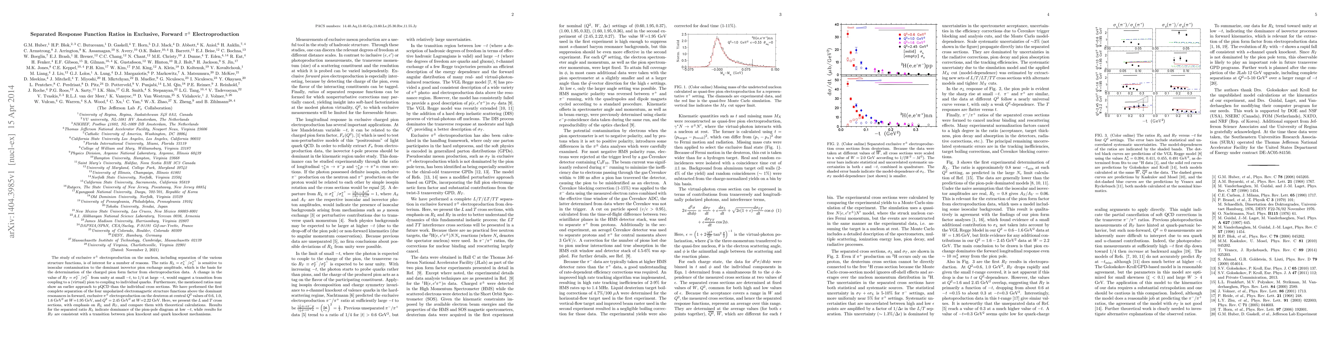 This paper investigates exclusive $\pi^{\pm}$ electroproduction on the nucleon, focusing on the ratios $R_L$ and $R_T$ to understand isoscalar contamination and transitions between pion and quark coupling mechanisms. Experimental results show $R_L$ dominated by pion exchange, while $R_T$ suggests a shift from pion to quark coupling with increasing $-t$.
