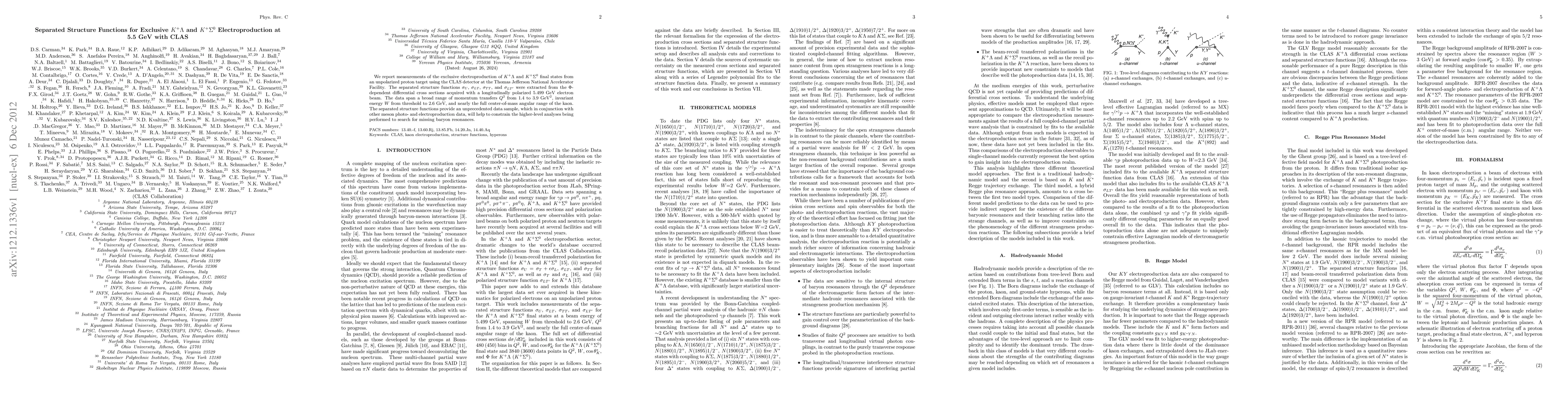 This paper reports measurements of exclusive $K^+\Lambda$ and $K^+\Sigma^0$ electroproduction from protons using the CLAS detector. It extracts separated structure functions from differential cross sections, providing data that will aid in constraining higher-level analyses for missing baryon resonances.