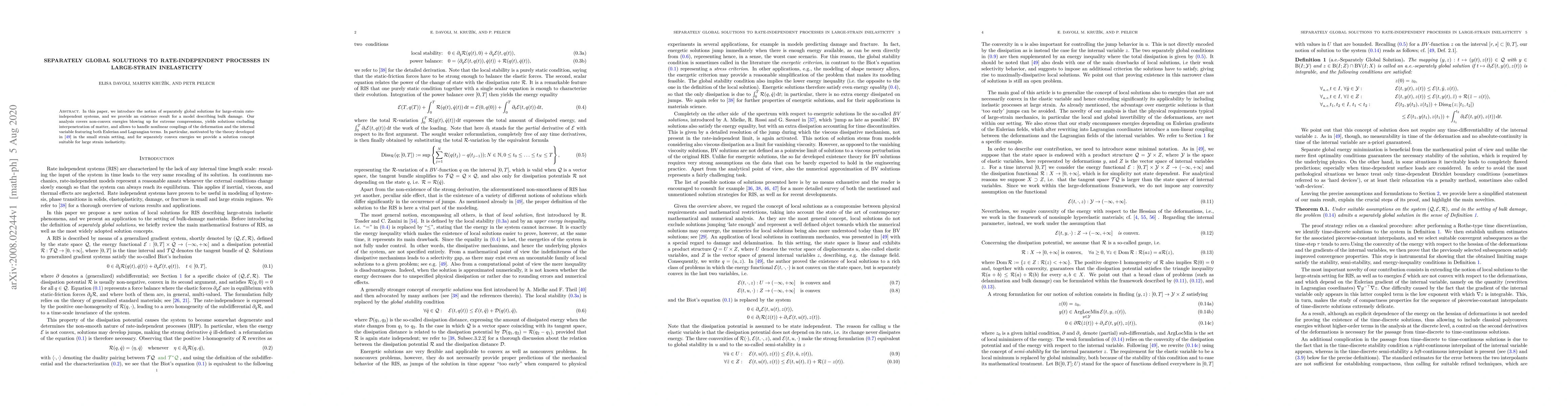 In this paper, we introduce the notion of separately global solutions for large-strain rate-independent systems, and we provide an existence result for a model describing bulk damage. Our analysis covers non-convex energies blowing up for extreme compressions, yields solutions excluding interpenetration of matter, and allows to handle nonlinear couplings of the deformation and the internal variable featuring both Eulerian and Lagrangian terms. In particular, motivated by the theory developed in [49] in the small strain setting, and for separately convex energies we provide a solution concept suitable for large strain inelasticity.