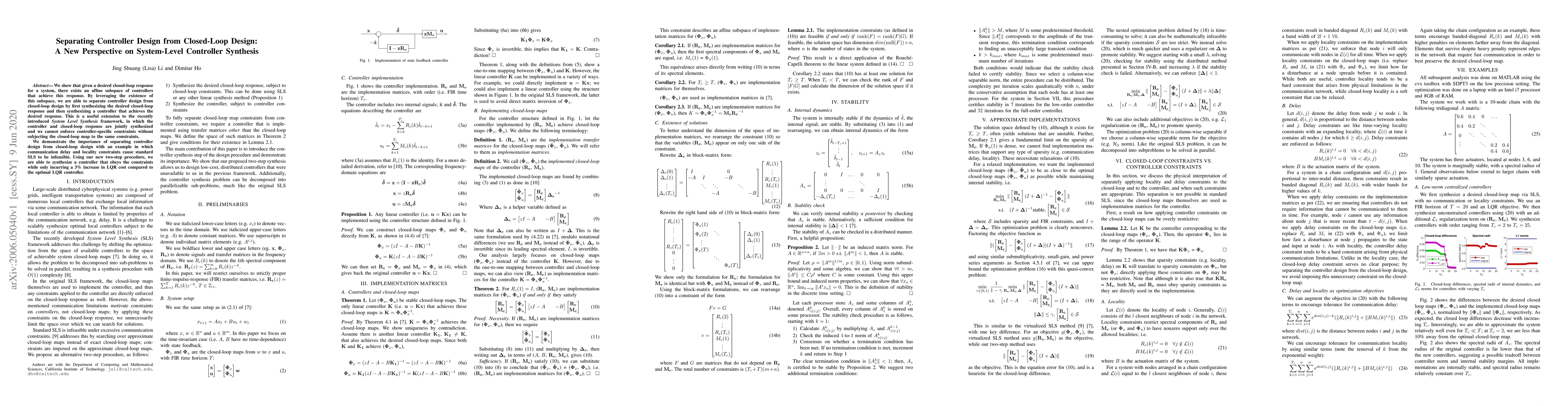 We show that given a desired closed-loop response for a system, there exists an affine subspace of controllers that achieve this response. By leveraging the existence of this subspace, we are able to separate controller design from closed-loop design by first synthesizing the desired closed-loop response and then synthesizing a controller that achieves the desired response. This is a useful extension to the recently introduced System Level Synthesis framework, in which the controller and closed-loop response are jointly synthesized and we cannot enforce controller-specific constraints without subjecting the closed-loop map to the same constraints. We demonstrate the importance of separating controller design from closed-loop design with an example in which communication delay and locality constraints cause standard SLS to be infeasible. Using our new two-step procedure, we are able to synthesize a controller that obeys the constraints while only incurring a 3% increase in LQR cost compared to the optimal LQR controller.