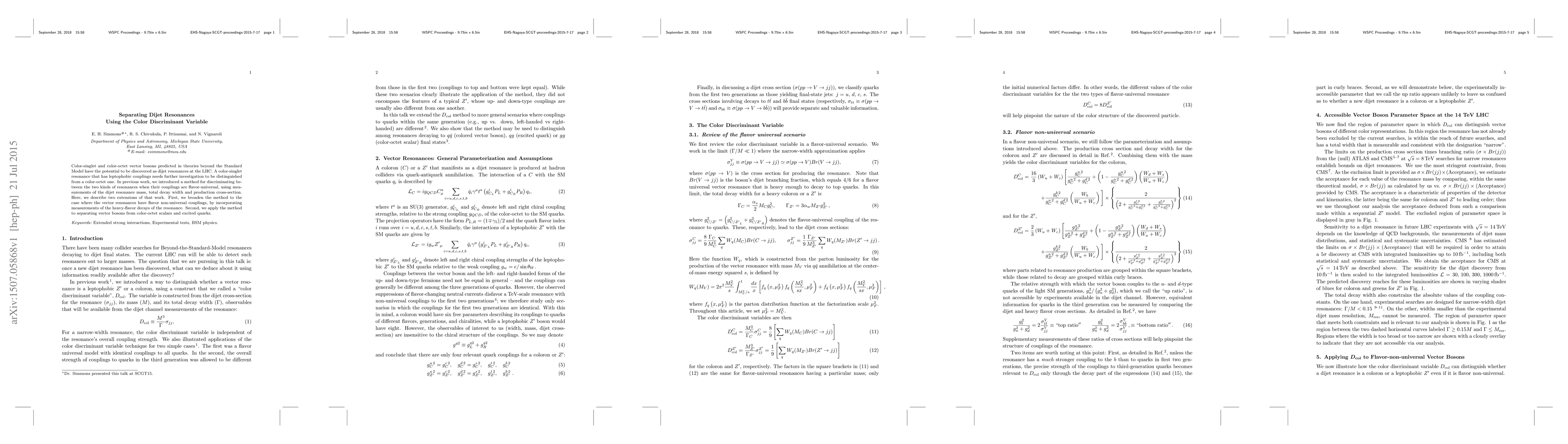 Color-singlet and color-octet vector bosons predicted in theories beyond the Standard Model have the potential to be discovered as dijet resonances at the LHC. A color-singlet resonance that has leptophobic couplings needs further investigation to be distinguished from a color-octet one. In previous work, we introduced a method for discriminating between the two kinds of resonances when their couplings are flavor-universal, using measurements of the dijet resonance mass, total decay width and production cross-section. Here, we describe two extensions of that work. First, we broaden the method to the case where the vector resonances have flavor non-universal couplings, by incorporating measurements of the heavy-flavor decays of the resonance. Second, we apply the method to separating vector bosons from color-octet scalars and excited quarks.