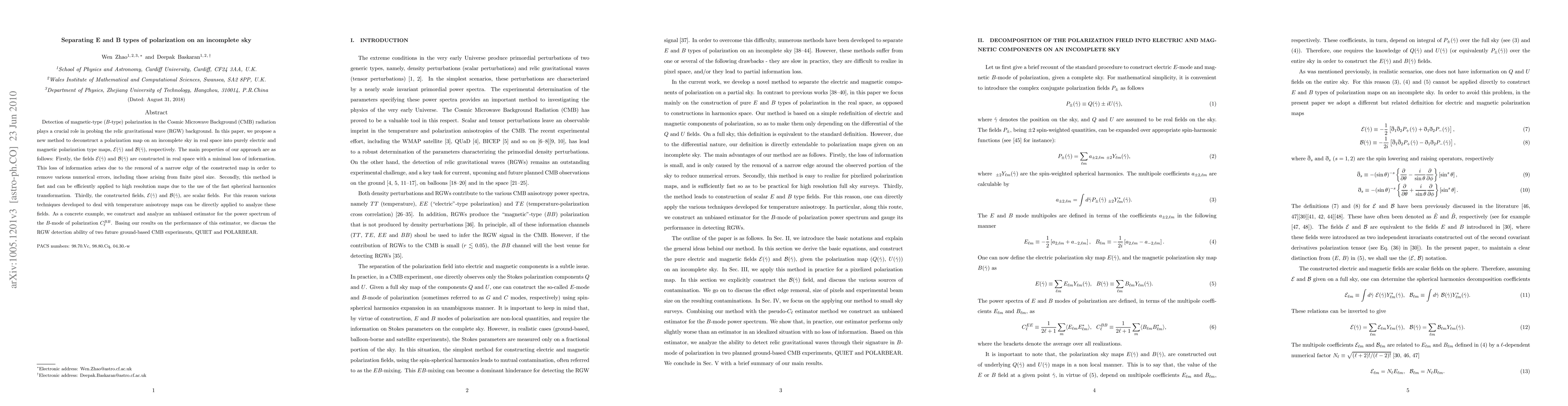 This paper proposes a new method to separate electric and magnetic polarization types in incomplete CMB maps, constructing ${\mathcal{E}}(\hat{\gamma})$ and ${\mathcal{B}}(\hat{\gamma})$ fields with minimal information loss. The method is efficient and applicable to high-resolution maps, enabling the analysis of $B$-mode polarization for relic gravitational wave detection.