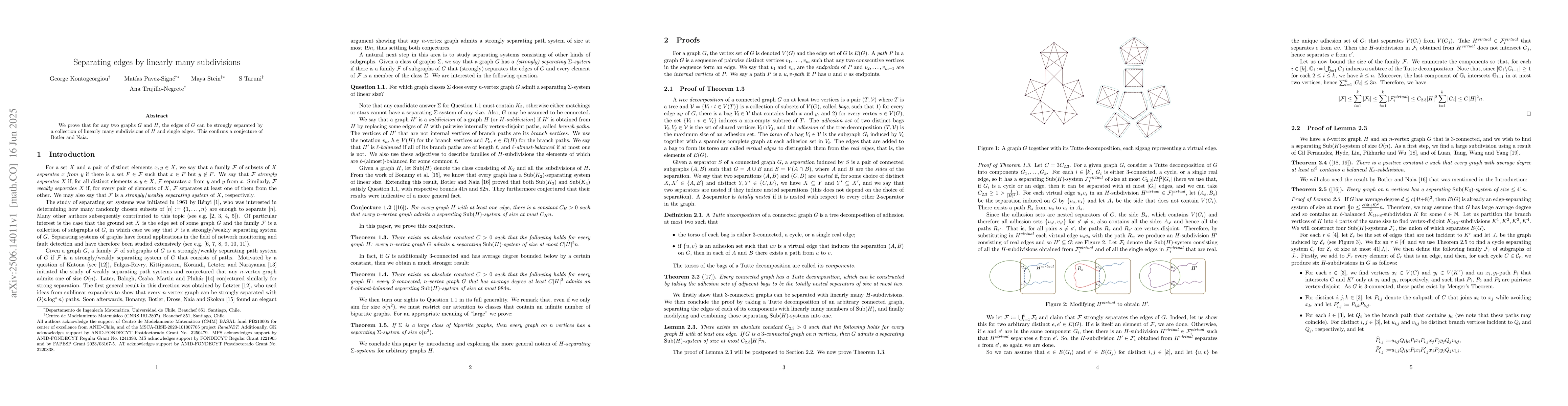 The paper proves that any graph's edges can be strongly separated using linearly many subdivisions of another graph H and single edges, verifying a conjecture by Botler and Naia.
