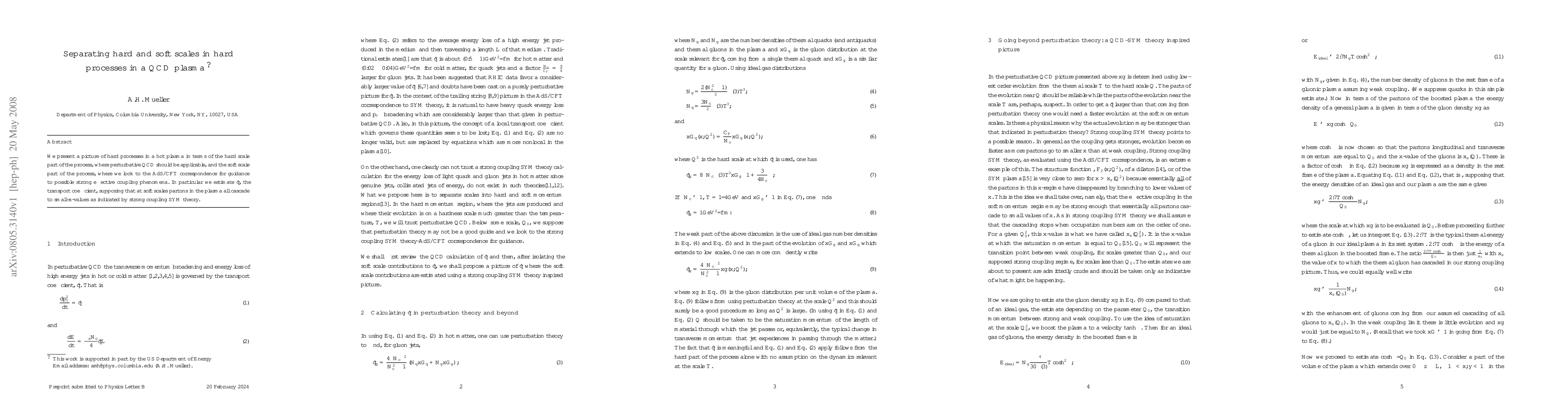 We present a picture of hard processes in a hot plasma in terms of the hard scale part of the process, where perturbative QCD should be applicable, and the soft scale part of the process, where we look to the AdS/CFT correspondence for guidance to possible strong effective coupling phenomena. In particular we estimate $\hat{q}$, the transport coefficient, supposing that at soft scales partons in the plasma all cascade to small-$x$-values as indicated by strong coupling SYM theory.