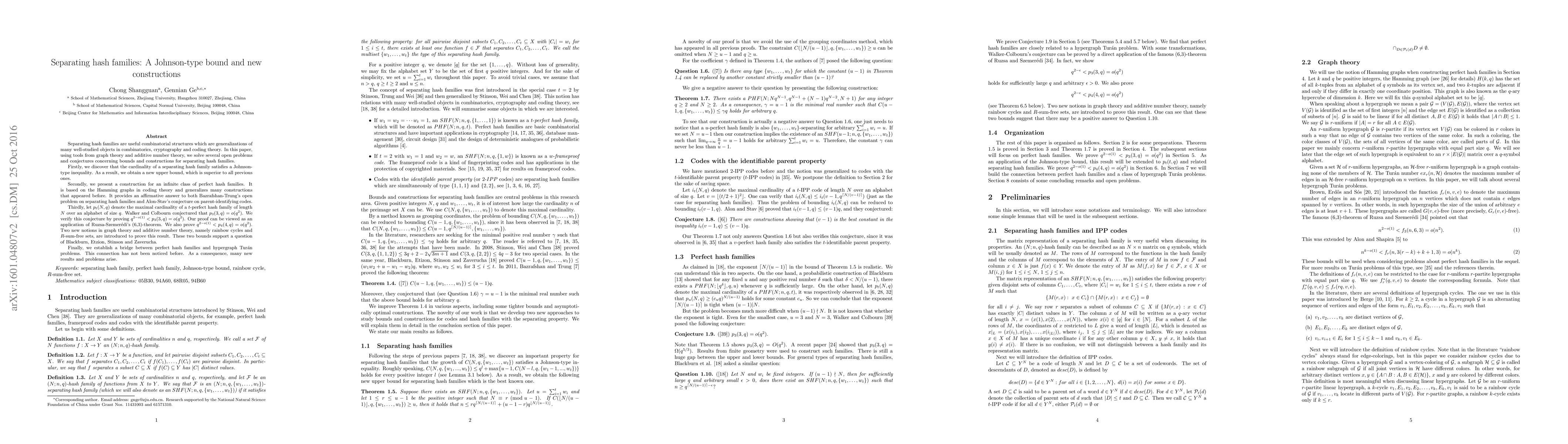 cardinality of a separating hash family satisfies a Johnson-type inequality. As