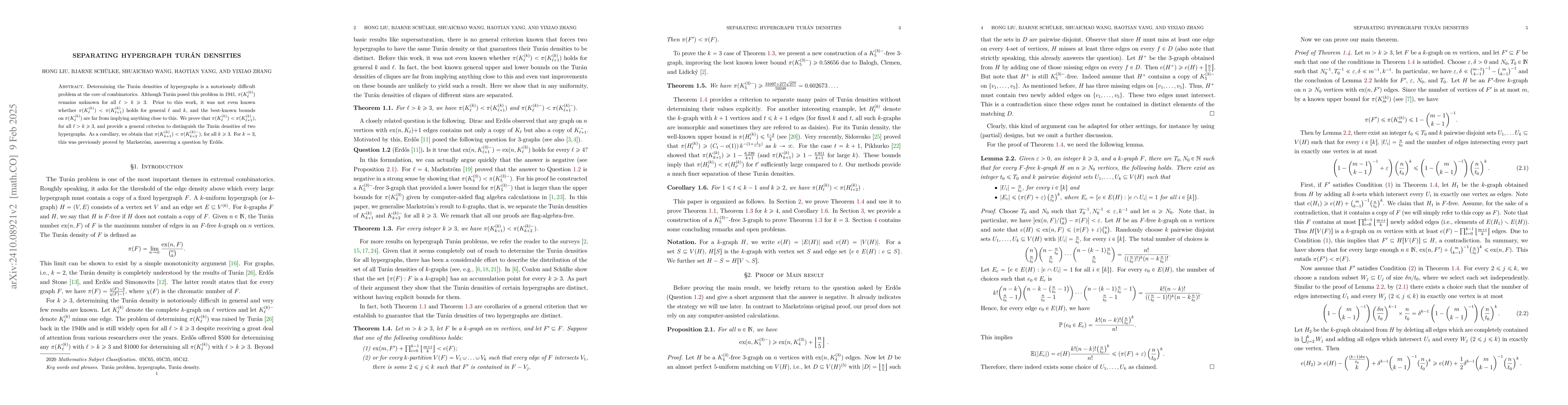 This paper disproves a conjecture by Erdős regarding the Turán densities of certain hypergraphs, showing $\pi(K_{k+1}^{(k)})<\pi(K_{k+2}^{(k)-})$ for all $k\geq 3$ using a flag-algebra-free proof. It also demonstrates the separation of Turán densities for other hypergraphs, establishing $\pi(K_{\ell}^{(k)})<\pi(K_{\ell+1}^{(k)})$ for all $\ell> k\geq3$.
