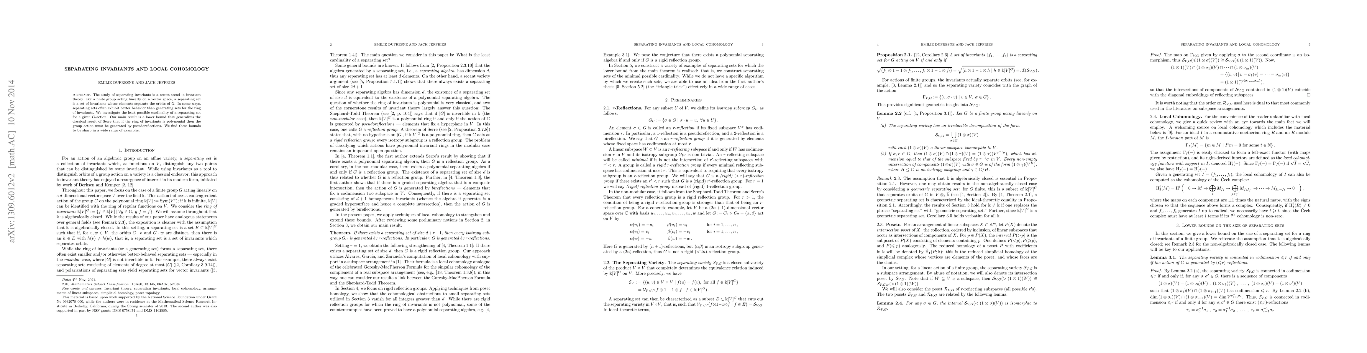 The study of separating invariants is a recent trend in invariant theory. For a finite group acting linearly on a vector space, a separating set is a set of invariants whose elements separate the orbits of G. In some ways, separating sets often exhibit better behavior than generating sets for the ring of invariants. We investigate the least possible cardinality of a separating set for a given G-action. Our main result is a lower bound that generalizes the classical result of Serre that if the ring of invariants is polynomial then the group action must be generated by pseudoreflections. We find these bounds to be sharp in a wide range of examples.