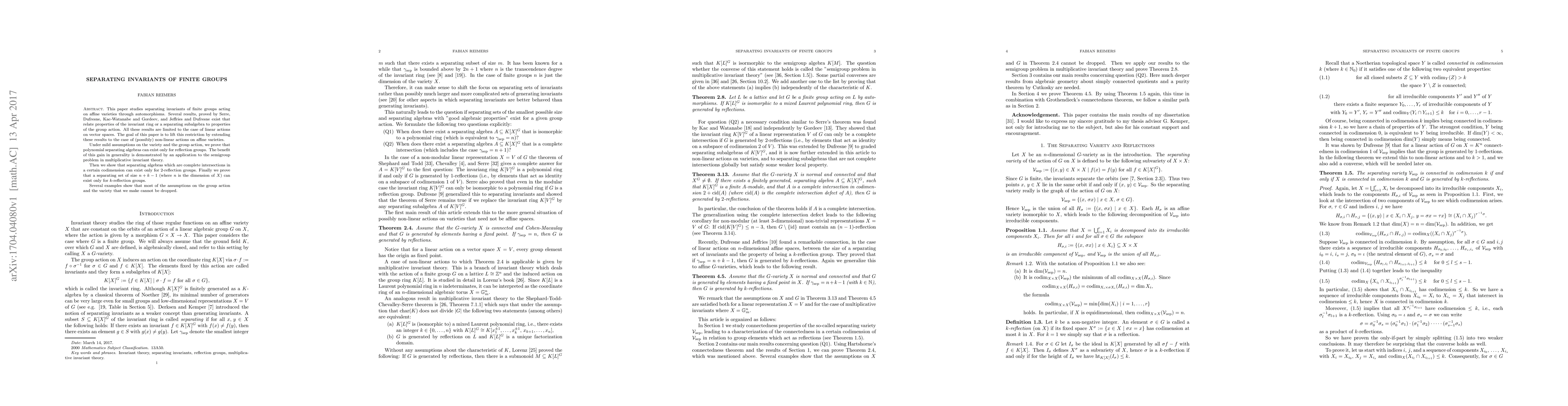 This paper extends known results on separating invariants of finite groups acting on affine varieties from linear actions to non-linear ones, proving the existence of polynomial separating algebras only for reflection groups and demonstrating applications to the semigroup problem in multiplicative invariant theory. It also shows that complete intersection separating algebras exist only for 2-reflection groups and that a separating set size condition applies to $k$-reflection groups.