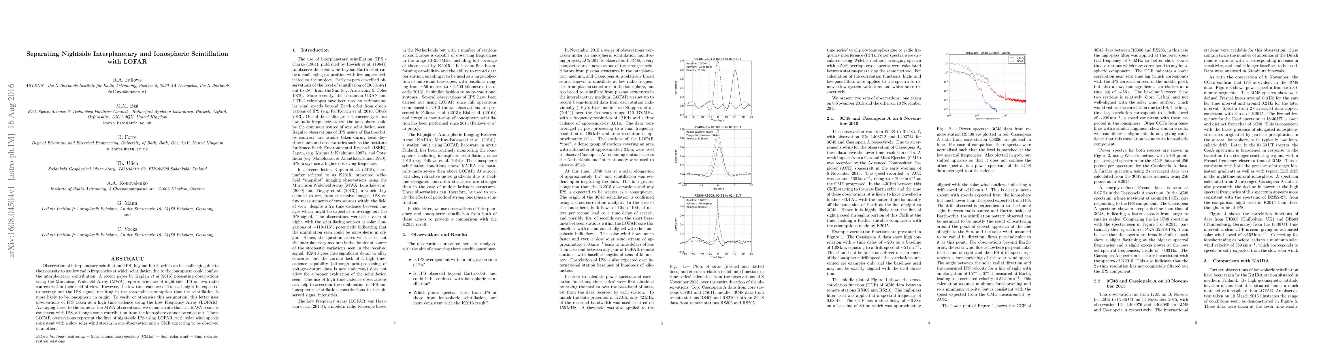 Observation of interplanetary scintillation (IPS) beyond Earth-orbit can be challenging due to the necessity to use low radio frequencies at which scintillation due to the ionosphere could confuse the interplanetary contribution. A recent paper by Kaplan {\it et al} (2015) presenting observations using the Murchison Widefield Array (MWA) reports evidence of night-side IPS on two radio sources within their field of view. However, the low time cadence of 2\,s used might be expected to average out the IPS signal, resulting in the reasonable assumption that the scintillation is more likely to be ionospheric in origin. To verify or otherwise this assumption, this letter uses observations of IPS taken at a high time cadence using the Low Frequency Array (LOFAR). Averaging these to the same as the MWA observations, we demonstrate that the MWA result is consistent with IPS, although some contribution from the ionosphere cannot be ruled out. These LOFAR observations represent the first of night-side IPS using LOFAR, with solar wind speeds consistent with a slow solar wind stream in one observation and a CME expecting to be observed in another.