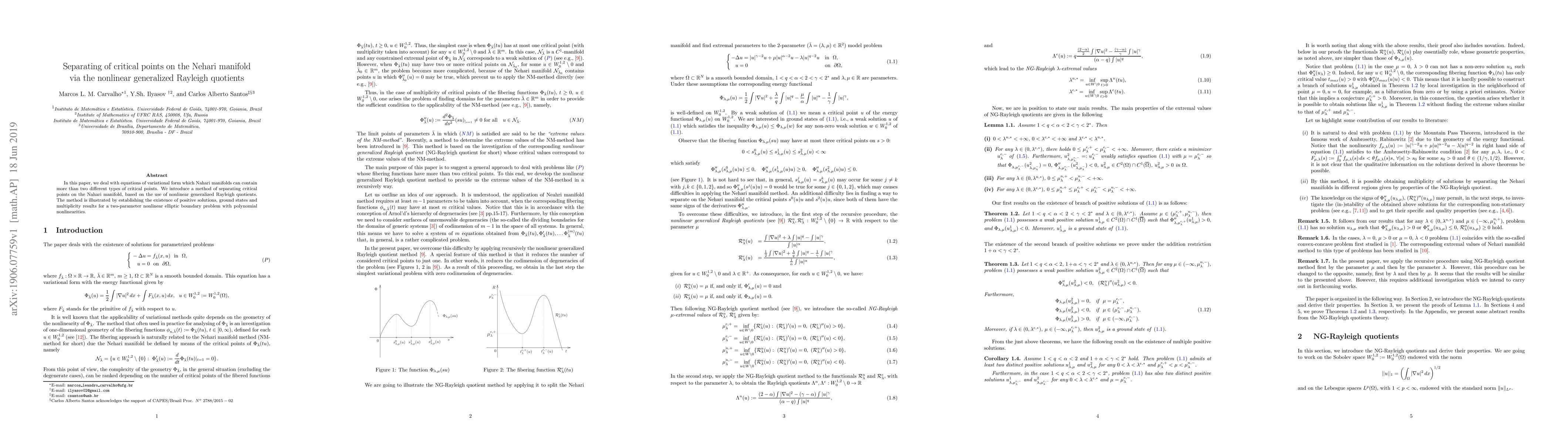 In this paper, we deal with equations of variational form which Nahari manifolds can contain more than two different types of critical points. We introduce a method of separating critical points on the Nahari manifold, based on the use of nonlinear generalized Rayleigh quotients. The method is illustrated by establishing the existence of positive solutions, ground states and multiplicity results for a two-parameter nonlinear elliptic boundary problem with polynomial nonlinearities.