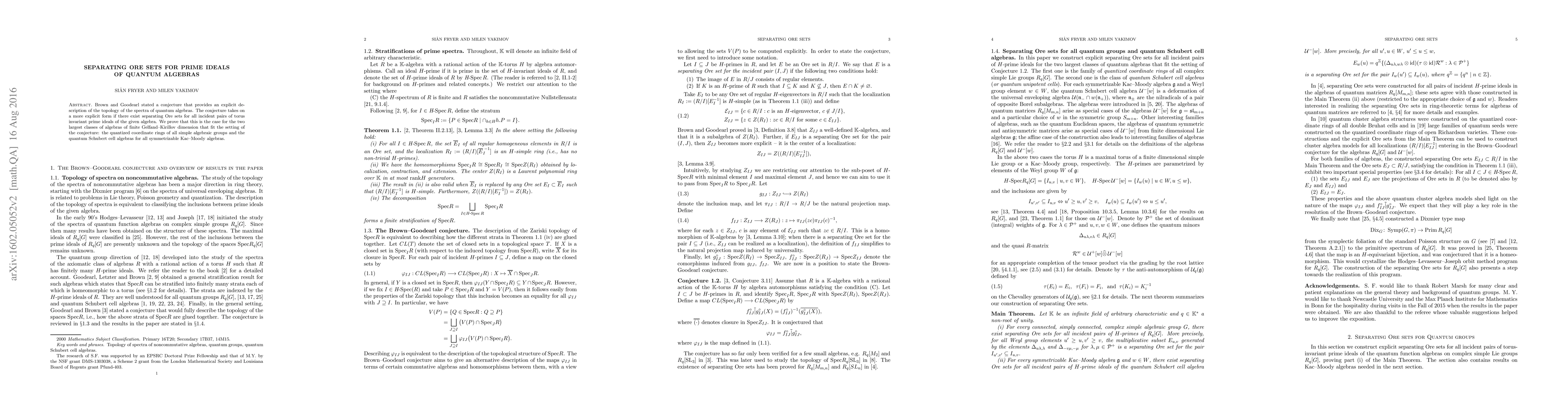 Brown and Goodearl stated a conjecture that provides an explicit description of the topology of the spectra of quantum algebras. The conjecture takes on a more explicit form if there exist separating Ore sets for all incident pairs of torus invariant prime ideals of the given algebra. We prove that this is the case for the two largest classes of algebras of finite Gelfand-Kirillov dimension that fit the setting of the conjecture: the quantized coordinate rings of all simple algebraic groups and the quantum Schubert cell algebras for all symmetrizable Kac-Moody algebras.